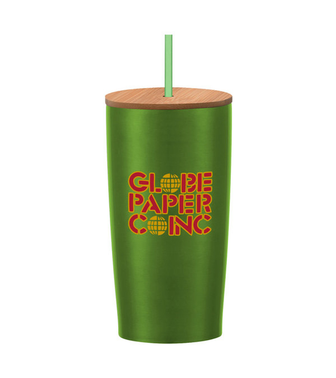 The 20 oz. Himalayan Tumbler with Bamboo Lid is expertly crafted to keep beverages hot or cold for hours so customers will enjoy using it. With its spill-resistant lid and removable straw, it easily goes from the home or office to anywhere else, keeping users hydrated and getting your custom imprint noticed. This makes a great appreciation gift for special customers and employees, and a wonderful way to promote your business. Double wall insulated tumbler Stainless steel outer and inner Keeps drinks hot or cold up to 6 hours Snap-on, spill-resistant bamboo lid Removable 9 in. straw Non-slip bottom Due to vacuum insulation technology, capacity is 18 oz. with lid on Meets FDA requirements BPA free Lids and straws packed separately and unassembled Hand wash recommended Screen-printed decoration Item size: 6.88″ H x 2.83″Dia (at base) Imprint area: Wraparound: 5″ W x 2″ H (2 colors max.) Imprint: Wraparound: 6 lines / 28 characters per line Applicable charges: $60.00 set up charge $0.30 per pc per additional color