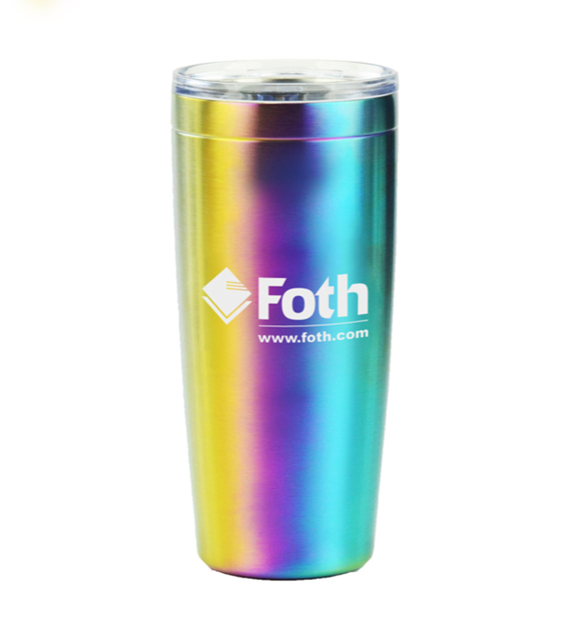 The 20 oz. Rainbow VikingĀ® Nova Tumbler is a custom business gift that easily commands attention. It’s designed with vacuum insulation and a copper lining to keep beverages hot or cold for hours so users will enjoy sipping from it all day long. With its bold iridescent finish, this tumbler stands out in any room, keeping your company’s logo on display in an impactful way. 20 oz. Tumbler with iridescent finish Double wall, vacuum insulated stainless steel with copper lining Drink-through lid for easy sipping on-the-go Keeps liquids hot for 5.5 hours or cold for 24 hours Press-in twist closure lid Hand washing recommended for a lasting imprint Screen-printed decoration Item size: 7.5″ H x 3.5″ D Imprint area: Front/Back: 2.5″ W x 3″ H (1 color max.) Imprint: Front/Back: 10 lines / 18 characters per line Applicable charges: $60.00 set up charge