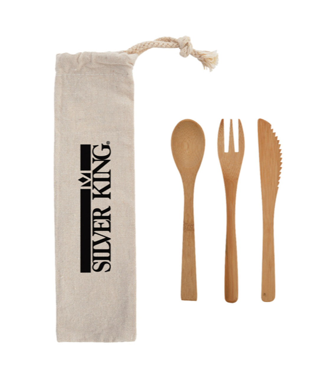 The 3-piece Bamboo Utensil set comes with a convenient travel pouch that makes it easy to carry along anywhere. Ideal for travel and outdoor dining, these utensils are reusable and a much better alternative to single-use plastic utensils. Set includes: Fork, spoon and knife 8 oz. Cotton drawstring pouch for storage and travel BPA free Meets FDA requirements Hand wash recommended Screen-printed decoration Item size: Pouch: 10″ W x 2.75″ H / Utensil: 6″ H Imprint area: Pouch: 6″ W x 1.5″ H (1 color max.) Imprint: Pouch: 5 lines / 34 characters per line Applicable charges: $60.00 set up charge