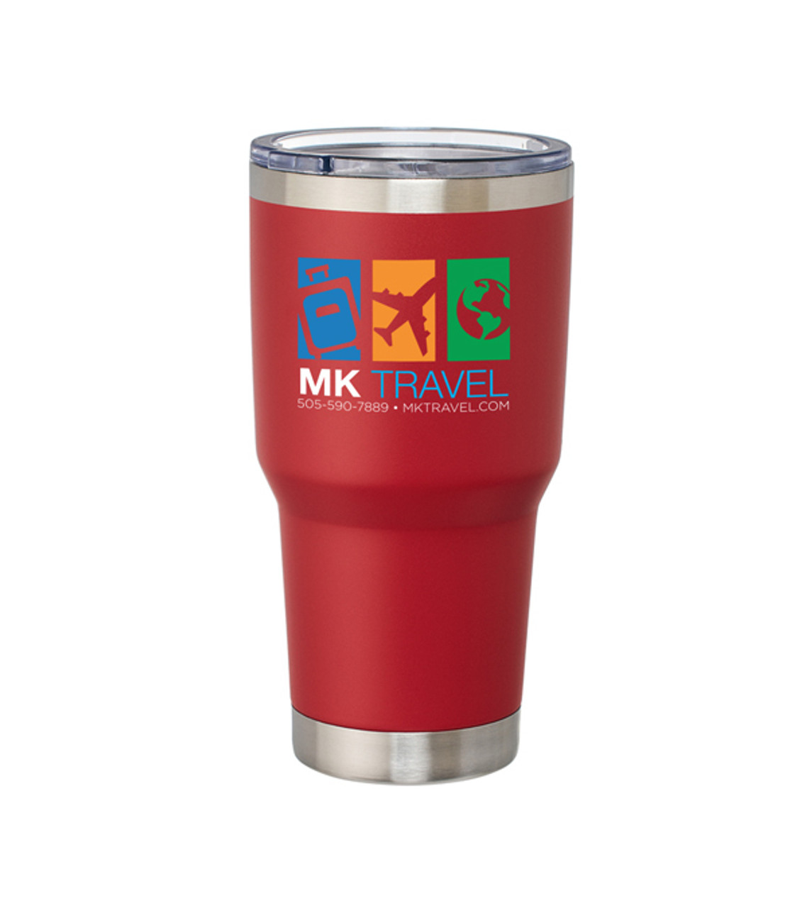 30 oz. double wall vacuum with Copper insulated Stainless Steel tumbler. Includes AS plastic slide locking lid. Designed for use with either hot or cold beverages. Do not microwave Freezer safe Hand wash only Fits most auto cup holders Full color digital decoration Item size: 30 oz., 8″ H x 2.87″ Dia. Imprint area: Front/Back: 3.5″ W x 2.25″ H (full color) / Wrap: 9.75″ W x 2.25″ H (full color) Imprint: Front/Back: 4 lines / 20 characters per line Wrap: 6 lines / 40 characters per line Applicable charges: $56.00 set up charge $1.00 per pc per additional location