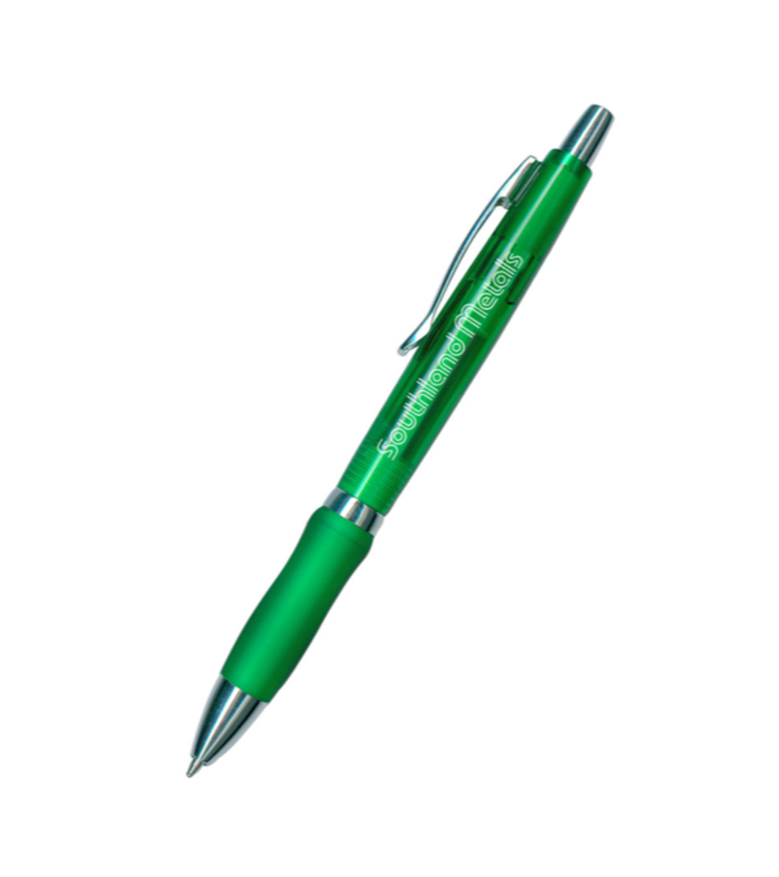 This attractive pen comes in a variety of colors, all with gleaming chrome trim that promises to draw attention. When you hand this out at trade shows and other events you’re sure to leave a mark on consumers far and wide. Retractable pen with translucent barrel and chrome trim Click-to-write action Screen-printed decoration Item size: 5.5″ W Imprint area: Wraparound: 1.75″ W x 0.63″ H (1 color max.) Imprint: Wraparound: 4 lines / 35 characters per line Imprint charges: $24.95 set up charge