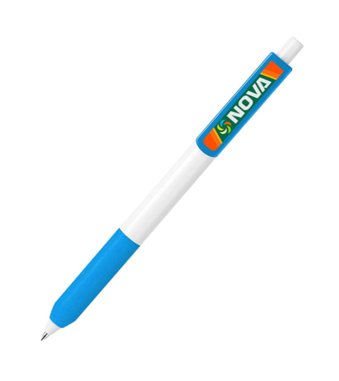 The Alamo Prime Pen with extra large clip will easily get more eyes on your logo. It’s colorfully designed with a matching grip and clip and it has a convenient click-action ballpoint that’s easy to extend or retract with just one hand. Add your unique imprint in full-color and give your business a boost in recognition. Click-action ballpoint pen Colored comfort grip Extra large carrying clip Plastic Full-color digital decoration Item size: 5.618″ H Imprint area: Pen clip: 1.5″ W x 0.375″ H (full color) Imprint: Pen clip: 3 lines / 14 characters per line Applicable charges: FREE set up