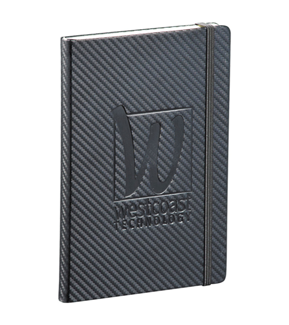 Thanks to their carbon fiber covers, these notebooks have a heavy-duty, industrial look. They make a great giveaway for manufacturing and automotive clients. The paper in this notebook comes from well-managed, FSC®-certified forests. Automotive-inspired carbon fiber UltraHyde cover Built-in elastic closure Ribbon page marker Expandable accordion pocket Includes 80 sheets (160 pages) of cream lined FSC® Mix paper Debossed decoration Item size: 5.5″ W x 8.5″ H x 0.3″ D Imprint area: Front: 3″ W x 5″ H Imprint: Front: 4 lines / 14 characters per line Imprint charges: $90.00 set up charge