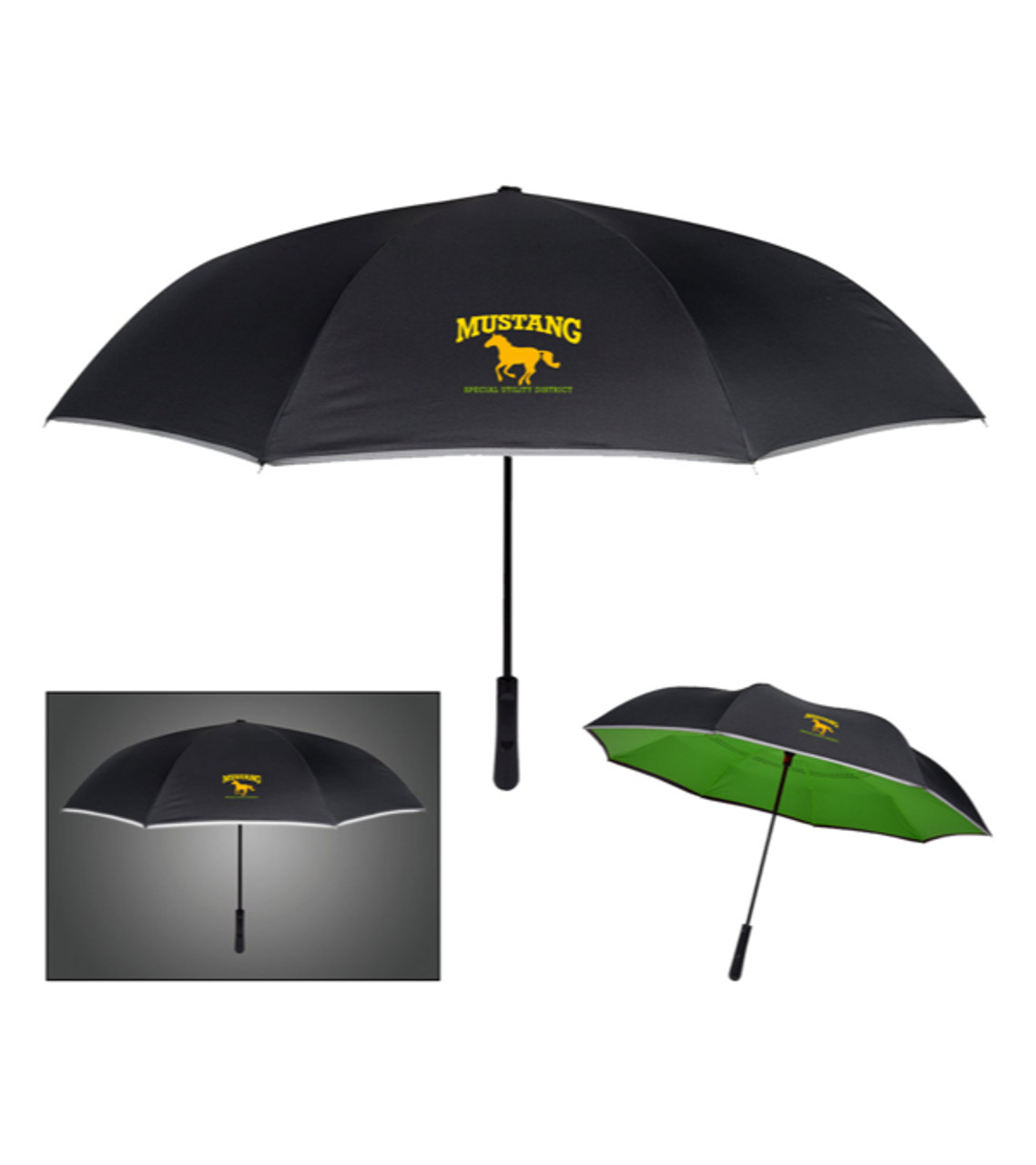 The 48″ Arc Reflective Edge Inversion Umbrella is a useful customer gift designed for safety and convenience. The reflective edge keeps users visible in low light settings and the inverted design lets users close the umbrella without it dripping onto them. Add your imprint and this is a wonderful way to increase awareness of your business. Custom umbrella with 48 in. canopy Manual open Inverted design keeps you dry when closing Contrasting underside Metal shaft Pongee material with patented reflective piping accents Heat-transferred decoration Item size: Closed: 29.5″ L Imprint area: Both Panels: 9″ W x 4″ H (3 colors max.) Imprint: Both Panels: 10 lines / 40 characters per line Applicable charges: $60.00 set up charge per color per location $0.50 per pc per color per location