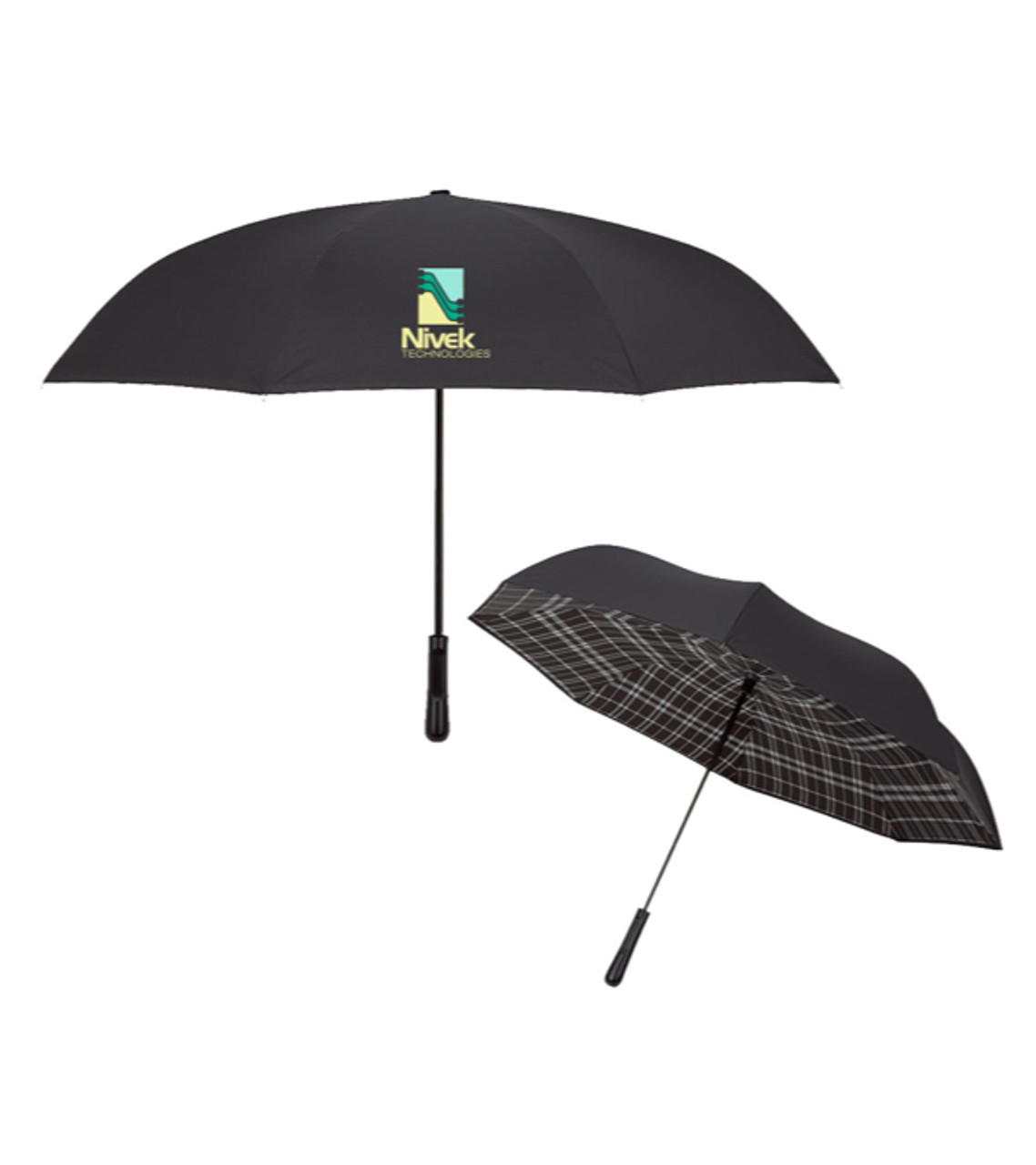 Customers will be so thankful for the Arc Soho Tartan Inversion Umbrella on rainy walks to work and school. The special inverted design allows the canopy to fold in from the middle and slide down the shaft, instead of folding straight down and dripping excess water all over you. This smart gift will get your logo seen and get more people talking about your brand. Wide 48 in. arc, manual open umbrella Metal shaft Unique inverted design keeps users dry when closing the canopy Canopy made of pongee material with a stylish tartan pattern underside Heat-transferred decoration Item size: 29.5″ L Closed Imprint area: Top Panel1: 9″ W x 4″ H (4 colors max.) / Bottom Panel1: 9″ W x 4″ H (4 colors max.) Imprint: Top Panel, Bottom Pane1: 10 lines / 50 characters per line Applicable charges: $60.00 set up charge per color, per location $0.50 per pc per additional color per location
