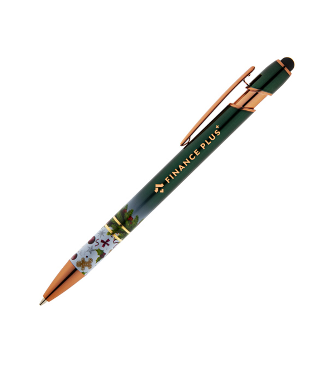 The Arden Festive Pen is the perfect item for any holiday promotion. Combining elegance and practicality, this beautifully designed pen will help your company reach more people during the festive season. Durable Brass Body Click-action medium ballpoint tip Upscale copper clip and accents Note: Individually cello wrapping available with extra charge Laser engraved for a permanent impression Item size: 5.62″ H Imprint area: Barrel Front: 1.75″ W x 0.20″ H / Barrel Back: 1.75″ W x 0.20″ H Imprint: 2 lines / 27 characters per line Applicable charges: $24.95 set up charge $0.15 per pc per additional location
