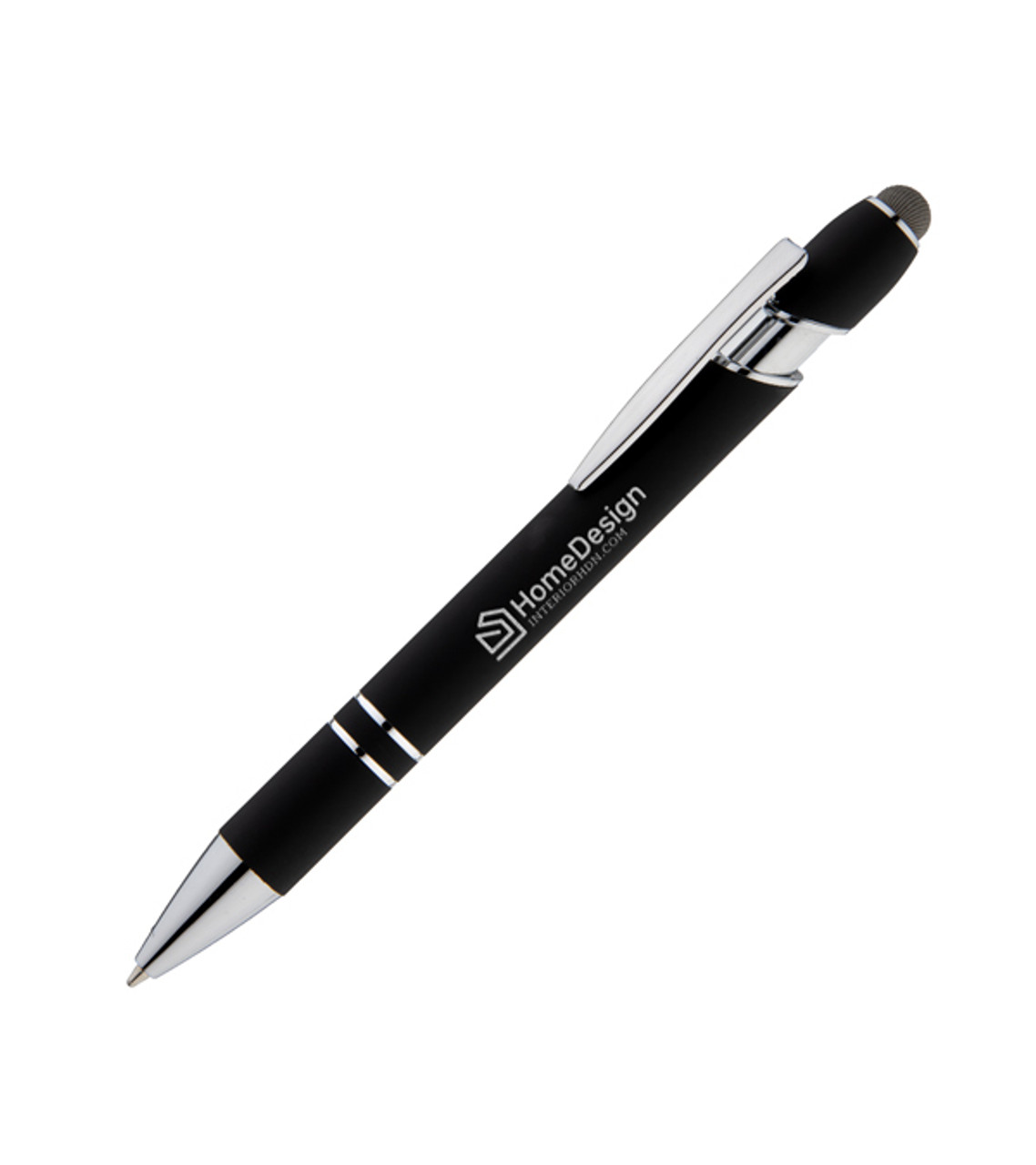 A great combination of features, making this pen a versatile and high-quality option for a promotional item or a gift. The inclusion of a good quality conductive stylus, large barrel offers up to 4 lines of custom text and ergonomic design for comfort is a valuable feature. Metal barrel with soft-touch finish Click-action mechanics Conductive stylus Handy carrying clip Medium ballpoint tip Ergonomic Designs barrel German technology ink Laser engraved so your imprint won’t rub off or fade Item size: 5.81″ H x 0.496″ Dia Imprint area: Barrel Front/Back: 2″ W x 0.375″ H Imprint: Barrel Front/Back: 4 lines / 30 characters per line Imprint charges: $24.95 set up charge $0.15 per pc per additional location