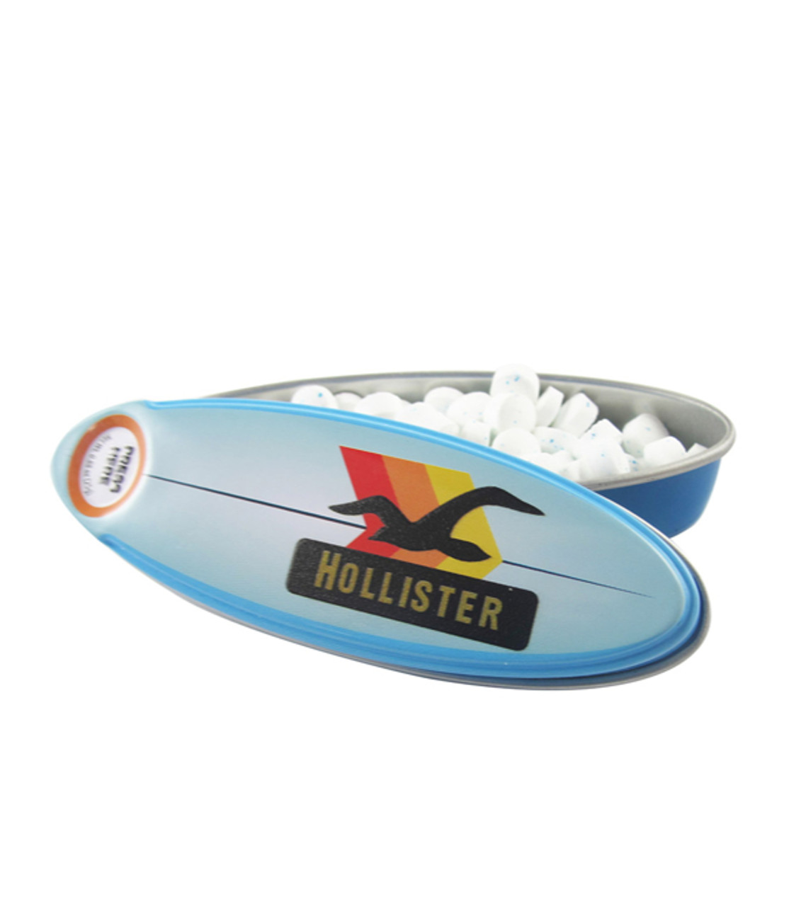 This surfboard tin will have you riding the wave of recognition in no time. Gift it at fairs and outdoor events to make sure your brand name is noticed and remembered. Tin 80 mints Full color digital decoration Item size: 1.25″ W x 3.5″ H Imprint area: Front: 2.5″ W x 0.875″ H (full color) Imprint: Front: 10 lines / 14 characters per line Applicable charges: $60.00 set up charge