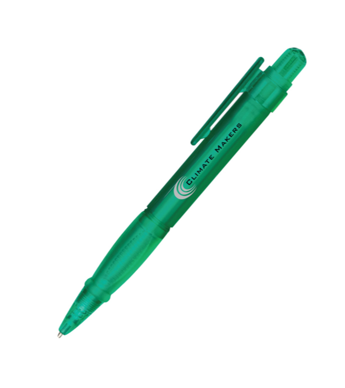 Our Aspen pen is a can’t-miss promotional gift with its translucent colored barrel and matching colored rubber grip. Add an amazing price and this custom ballpoint pen fits any promotion and any budget! Durable plastic Click-action medium ballpoint pen Rubber comfort grip Convenient clip Screen-printed decoration Item size: 5.25″H Imprint area:Barrel: 1.5″W x 0.625″H (2 colors max.) Imprint: Barrel: 4 lines / 22 characters per line Imprint charges: $24.95 set up charge $0.10 per pc per add’l color