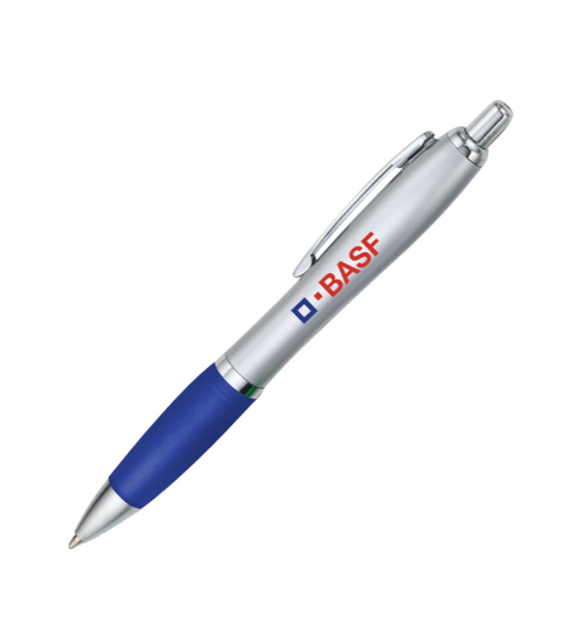 Your promotional imprint will look amazing on the curvy chrome barrel of the Basset II promotional pen! The matching chrome clip and trim complete this stylish ballpoint pen giving you a great marketing product that draws attention to your brand. Plastic Click-action medium ballpoint Colored comfort grip Chrome clip and trim Screen-printed decoration Item size: 5.37″H Imprint area:Barrel: 1.5″W x 0.5″H (2 colors max.) Imprint: Barrel: 3 lines / 24 characters per line Imprint charges: $24.95 set up charge $0.10 per pc per add’l color