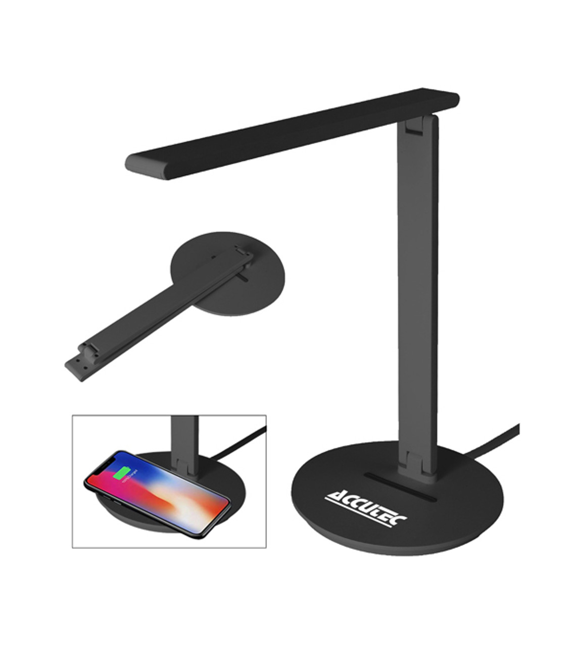 The Book Light Desktop Wireless Charger will illuminate their workspace, recharge their devices, and keep your business logo right where it will be noticed every day. It’s a thoughtful gift for students and team members, whether they’re onsite or remote. Bright white LED light Lamp can be folded down when not in use Charge Qi-enabled smartphones and devices simply by laying them onto the base Features a Type-C Input (cord Included) Output: 10W Note: some computer and laptop USB ports may not supply ample power to charge a device using the charging pad Pad-printed decoration Item size: 6.25″ W x 10″ H x 1.35″ D Imprint area: Base: 3″ W x 1.25″ H (1 color max.) Imprint: Base: 4 lines / 20 characters per line Applicable charges: $60.00 set up charge
