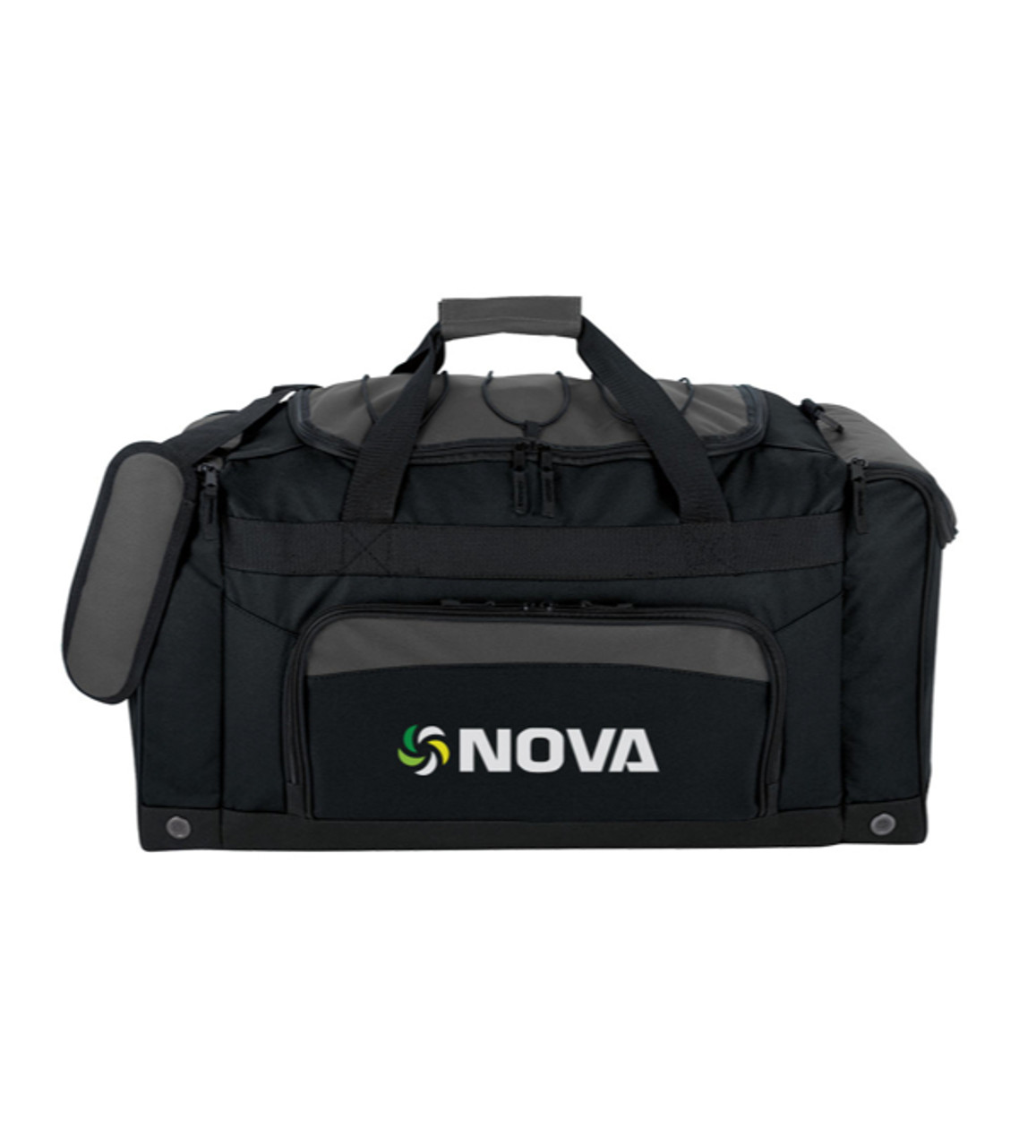 With a large main compartment, three pockets, and a bungee top for added storage, the Bungee Top Duffel bag is an ideal thank-you gift for travel-loving customers. It’s an excellent way to get your travel agency, hotel, or resort noticed. 600D Polyester Large main compartment with U-shaped zippered closure Two side zippered pockets One front zippered pocket Top bungee cord holds extra items in place Adjustable Strap: Length Min: 23.5″, Max: 45.5; Drop Length Min: 12.5″, Max: 24.5″ Max Weight Capacity: 30 lbs Screen-printed decoration Item size: 23.625″ W x 9.5″ H x 11″ D Imprint area: Front: 10″ W x 4″ H (2 colors max.) Imprint: Front: 4 lines / 32 characters per line Applicable charges: $60.00 set up charge $0.65 per pc per additional color