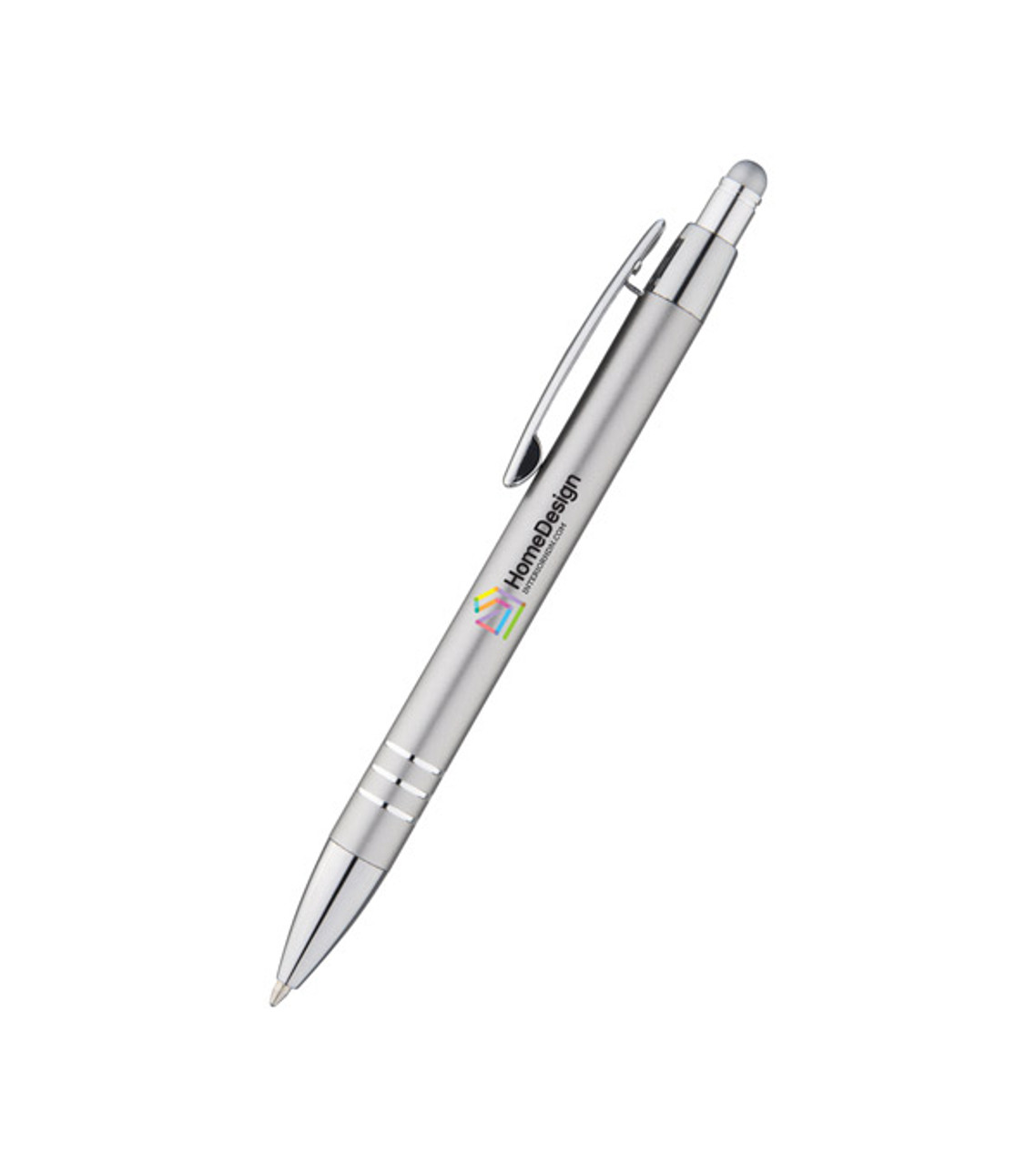 The Celena Stylus Metallic Pen fits your requirements perfectly with its convenient pocket clip, German technology ink, modern metallic finish, and support for full-color imprinting. Additionally, it offers smooth writing, touchscreen navigation, and a sleek modern design. This pen will surely make a great impression as a promotional item for your business needs. Easy click-action ballpoint tip Durable metal barrel Stylus for touchscreen navigation Full-color digital decoration Item size: 5.655″ H Imprint area: Barrel front/back: 2.5″ W x 0.25″ H (full color) Imprint: Barrel front/back: 2 lines / 35 characters per line Imprint charges: $30.95 set up charge