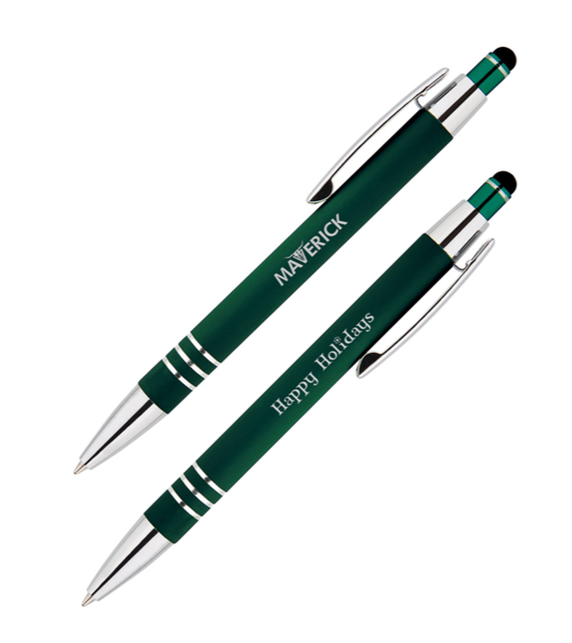 Our best-selling Celena stylus pen gets in the holiday spirit with a special message opposite your imprint on the barrel. Add this item to your holiday promotions to spread some cheer along with your business’ name. Smooth, soft-touch barrel Durable aluminum construction Stylus for touchscreen navigation Special “Happy Holidays” message on the barrel Gleaming chrome accents Laser engraved so your imprint won’t rub off or fade. Item size: 0.42″ W x 5.69″ H Imprint area: Pen Barrel: 2.5″ W x 0.25″ H Imprint: Pen Barrel: 2 lines / 35 characters per line Imprint charges: $24.95 set up charge