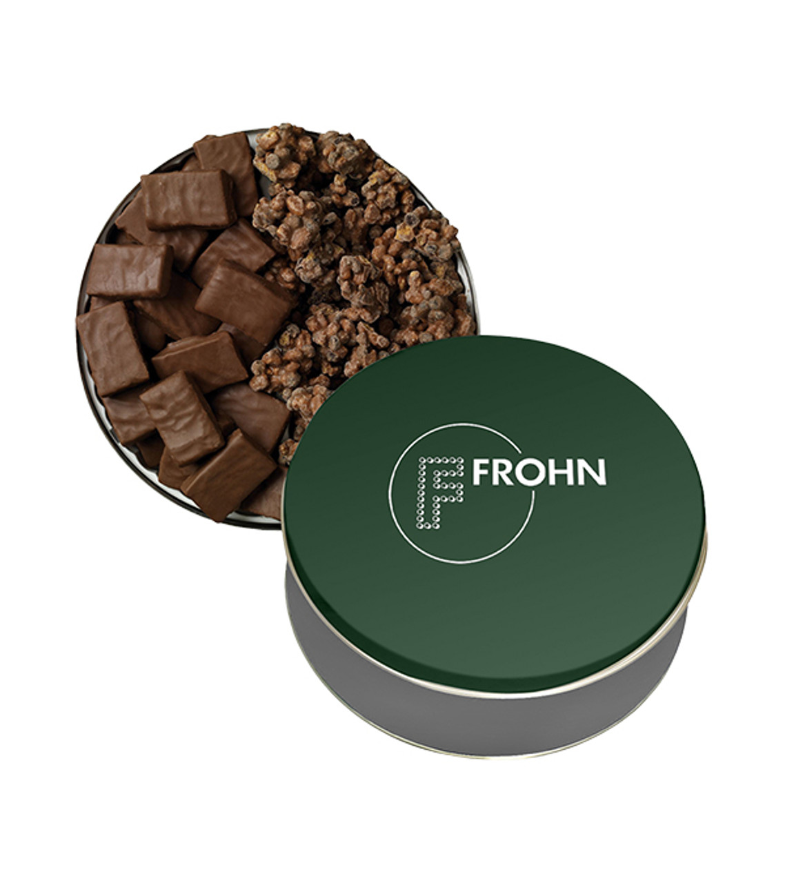Perfect for sharing, our custom collector tin of English butter toffee and dark chocolate almonds is sure to be a crowd pleaser! Choose from tin colors including white, silver, red, or green, and adorn the lid with photos and graphics unique to your business. A sweet treat to share any time of year! Collectors tin filled with 19 oz. (538g) of English butter toffee and dark chocolate almonds Pad printed decoration Item size: 2.625″ D x 7.1875″ Dia. Imprint area: Solid tins: 6.1875″ Dia. (1 color max.) Imprint: Solid tins: 6 lines / 30 characters per line Applicable charges: $55.00 set up charge In order to ensure the highest-quality delivery of your product, we use special insulated packaging and cool packs to protect chocolate orders from heat during warm weather months and/or when shipping to warm climates. Depending on your location, 2-day shipping may be necessary to preserve the quality of the products. Additional charges will be incurred. Please contact our Customer Service team for more information.