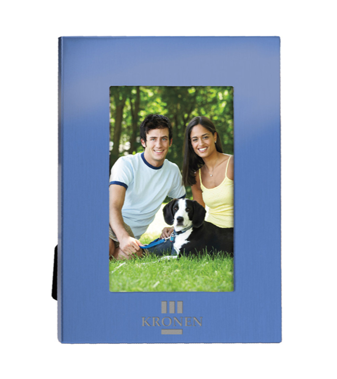 Show your photos off in style! A colorful take on our standard 4″ x 6″ aluminum frame. Features a brushed aluminum frame with velvet back. This stylish custom photo frame personalized with your logo will be that business gift that your customers will love to have on their desk. Brushed Aluminum picture frame Velvet back Holds one 4 x 6 photo Laser engraved decoration Item size: 6.125″ W x 8.125″ H x 0.4375″ D Imprint area: 3.5″ W x 0.9375″ H Imprint: 3 lines / 26 characters per line Applicable charges: $60.00 set up charge
