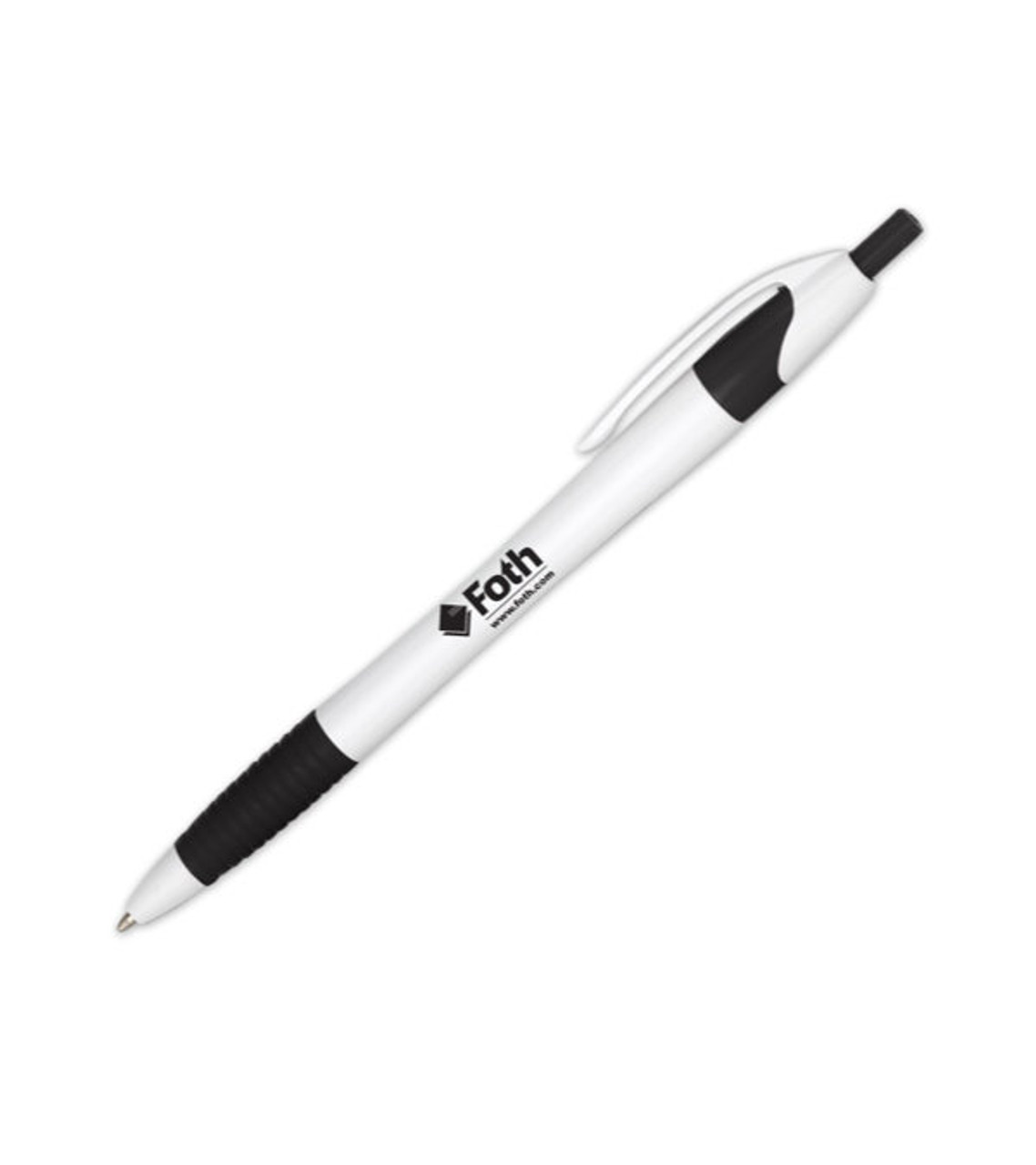 It’s not hard to see why the Comfy Curvy White Barrel Pen is a great customer giveaway. The unique contoured barrel and comfort grip feel good in hand; and the white barrel design makes a perfect background for your imprint! Hand out this at any event and it’s sure to help your message spread. Click-action medium ballpoint Stylish curved barrel Rubber comfort grip Plastic construction Convenient clip Screen-printed decoration Item size: 5.75″ H Imprint area: Barrel: 1.5″ W x 0.75″ H (1 color max.) Imprint: Clip: 3 lines / 18 characters per line Imprint charges: $24.95 set up charge