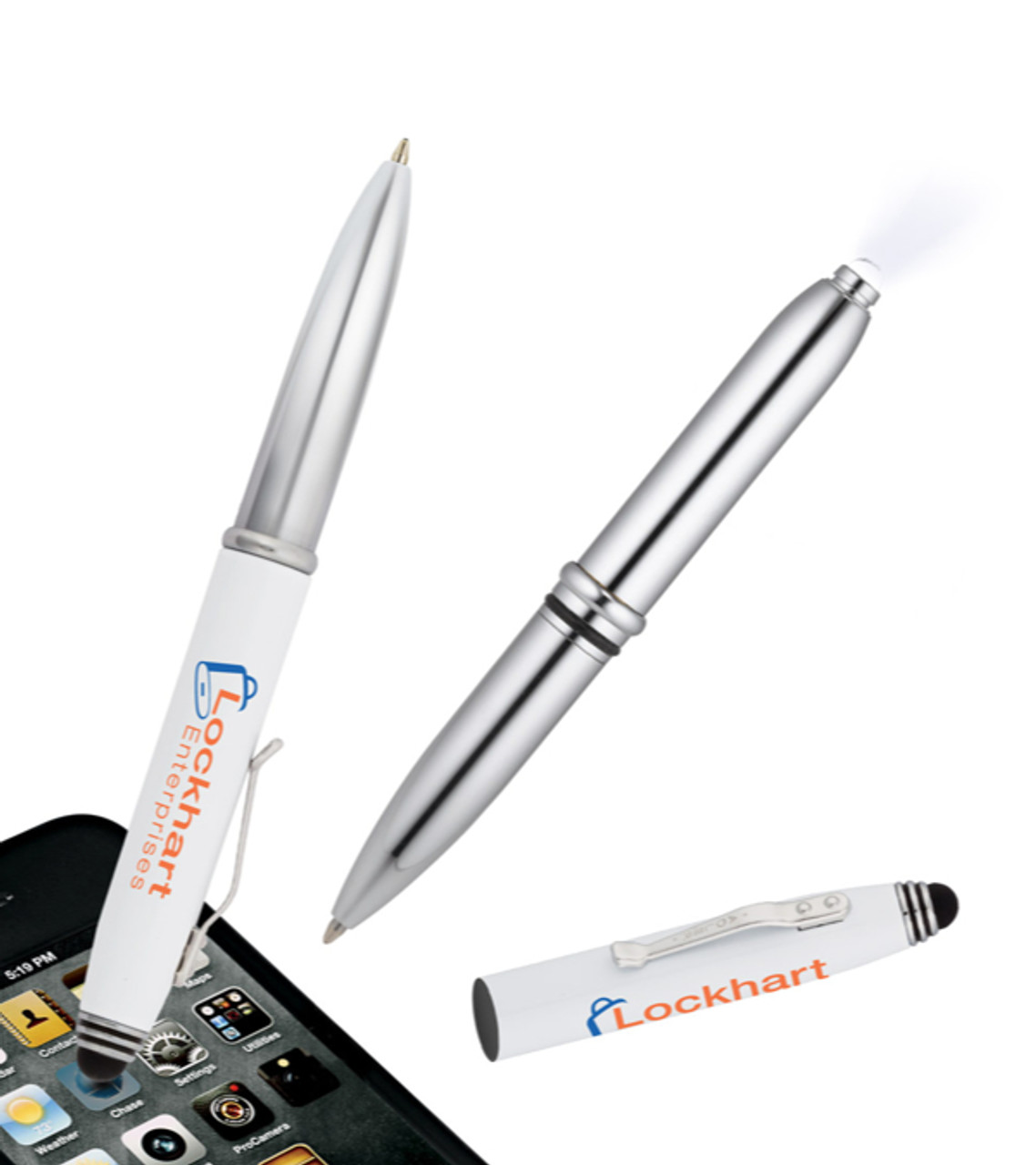 It’s easy to see why our Crowne Triple function Pen makes a powerful promo gift. It’s crafted of brass with a smooth ballpoint tip, a stylus for touchscreen navigation and a light at the end that can come in handy when looking for items in a drawer, bag, car, or other dim setting. With your full-color imprint on the cap, this pen will make your business stand out any day. Durable brass ballpoint pen Touchscreen stylus at tip of cap Push-activated LED light at the end Includes 3 LR41 button cell batteries (replaceable) Convenient carrying clip Individually cello wrapping available with extra charge Full-color digital decoration Item size: 4.96″ H x 0.48″ Dia Imprint area: Cap front: 1.75″ W x 0.25″ H (full color) Cap back: 1.75″ W x 0.25″ H (full color) Imprint: Cap front, Cap back: 2 lines / 35 characters per line Imprint charges: $30.95 set up charge