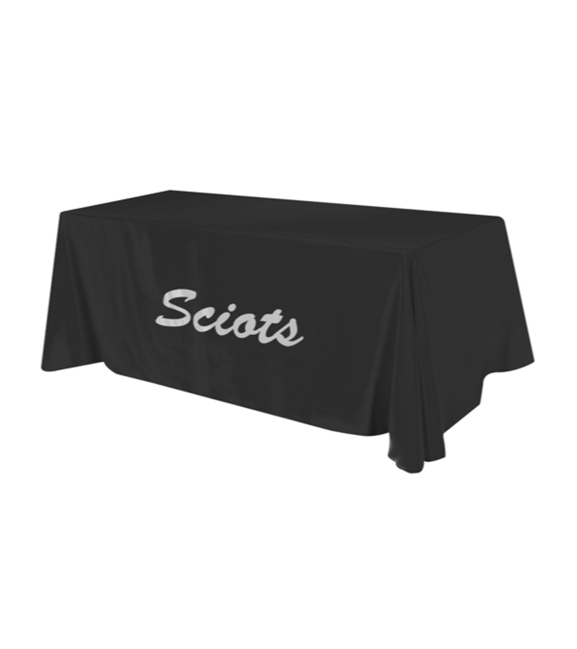 The competition will take cover when your table display steals the show! Our 6′ polyester four-sided table cover is perfect for trade shows. Covers four sides of a 6-foot standard table. Premium quality polyester table drapes are stain resistant, washable, flame resistant, and easy to ship. Features rolled hem and safety surged non-fray seams and rounded corners. Table throws drapes four sides of 29″ high tables. 100% Polyester flat table cover (approx. 5 oz per yard) Flame retardant NFPA 701 Standard Closed back Covers four sides of a six foot standard table (approx. table size: 72″ W x 29″ H x 30″ D) Screen printed decoration Item size: 86″ W x 127″ L Imprint area: 34″ W x 22″ H (3 colors max.) Imprint: 10 lines / 28 characters per line Applicable charges: $85.00 set up charge $12 per pc per additional color