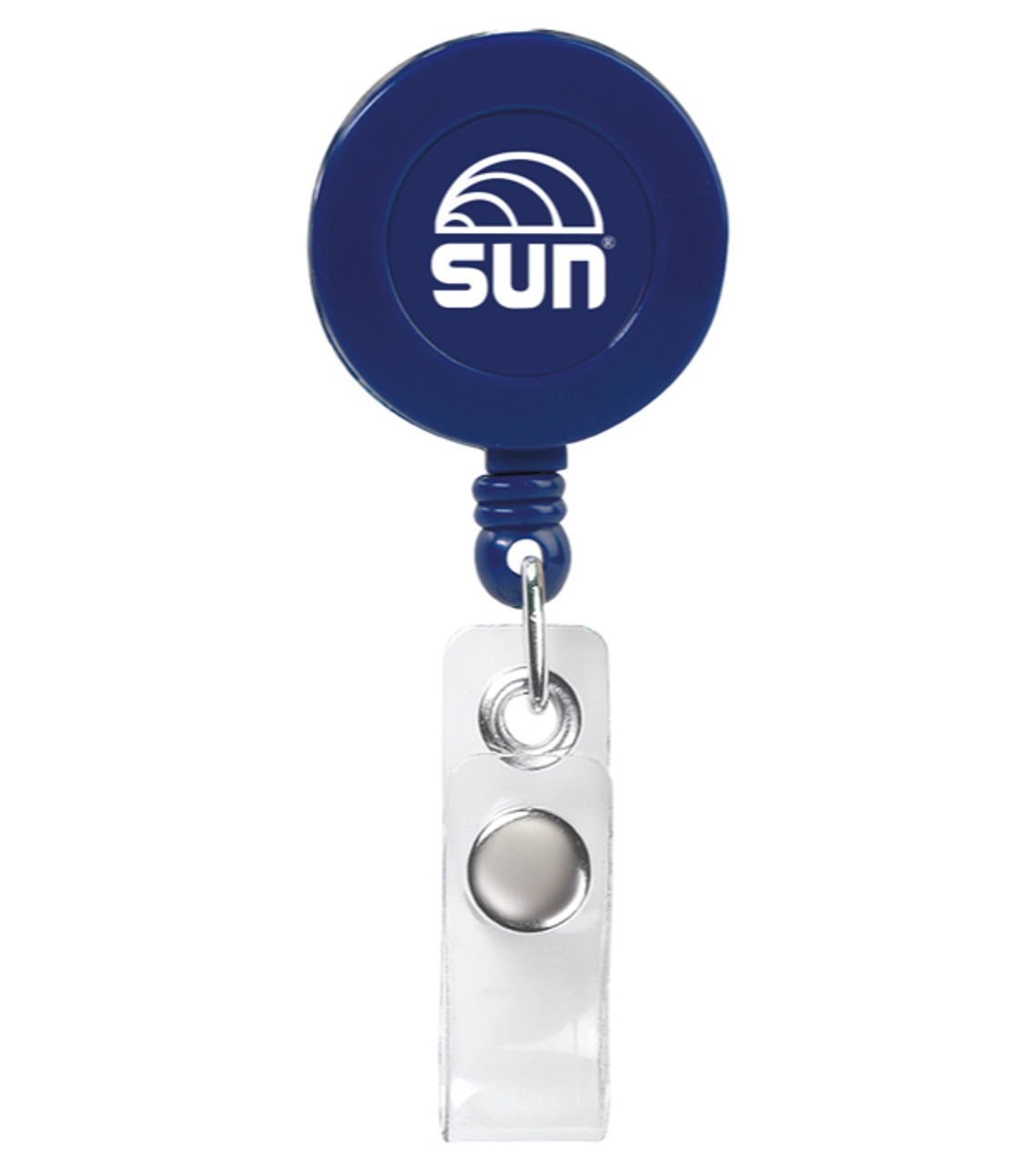 Colorful, practical and attractive, this promotional name badge holder will be appreciated by your customers and staff. Extends up to 30″ for quick and convenient badge-swiping. The only thing that this badge holder needs is your logo. Order yours today! Round badge made of ABA Plastic with 200D Nylon clear pane Stationary Iron alligator clip on back Extends up to 30″ L Full color digital decoration Item size: 1.125″ W x 3.5″ H x 0.3125″ D Imprint area: 0.625″ Dia. (full color) Imprint: 4 lines / 12 characters per line Applicable charges: $60.00 set up charge