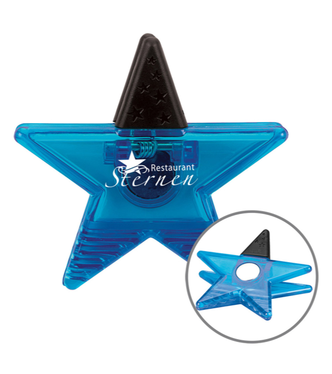 This promotional magnetic clip is sure to be a big hit in the financial and entertainment industries. This clip can hold paper while attaching itself to a metallic or magnetic surface. It has a black rubber grip at the top and comes in translucent yellow, blue and red. Item size: 3.4375″ W x 3.4375″ H x 1.875″ D Imprint area: 3″ W x 1.75″ H Imprint: 4 lines / 22 characters per line Applicable charges: $60.00 set up charge (1 color max.)