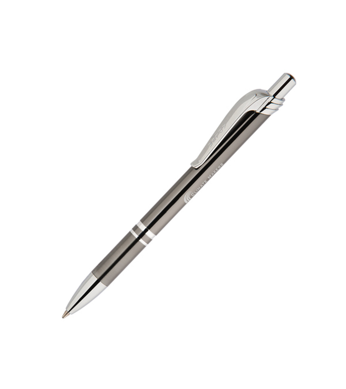 From its high-shine chrome tip to its impressive clip, the Dazzler metal pen will catch everyone’s eye. It’s an outstanding value and a beautiful business gift that will make sure your brand name is remembered always! Durable aluminum construction Grooved grip for comfort Impressive metal clip Click-action convenience Medium ballpoint tip Large imprint space on metal barrel Smooth-writing non-toxic ink Laser engraved for a permanent impression Item size: 0.387″ W x 5.5″ H Imprint area: Barrel: 2.25″ W x 0.203″ H Imprint: Barrel: 2 lines / 35 characters per line Imprint charges: $24.95 set up charge