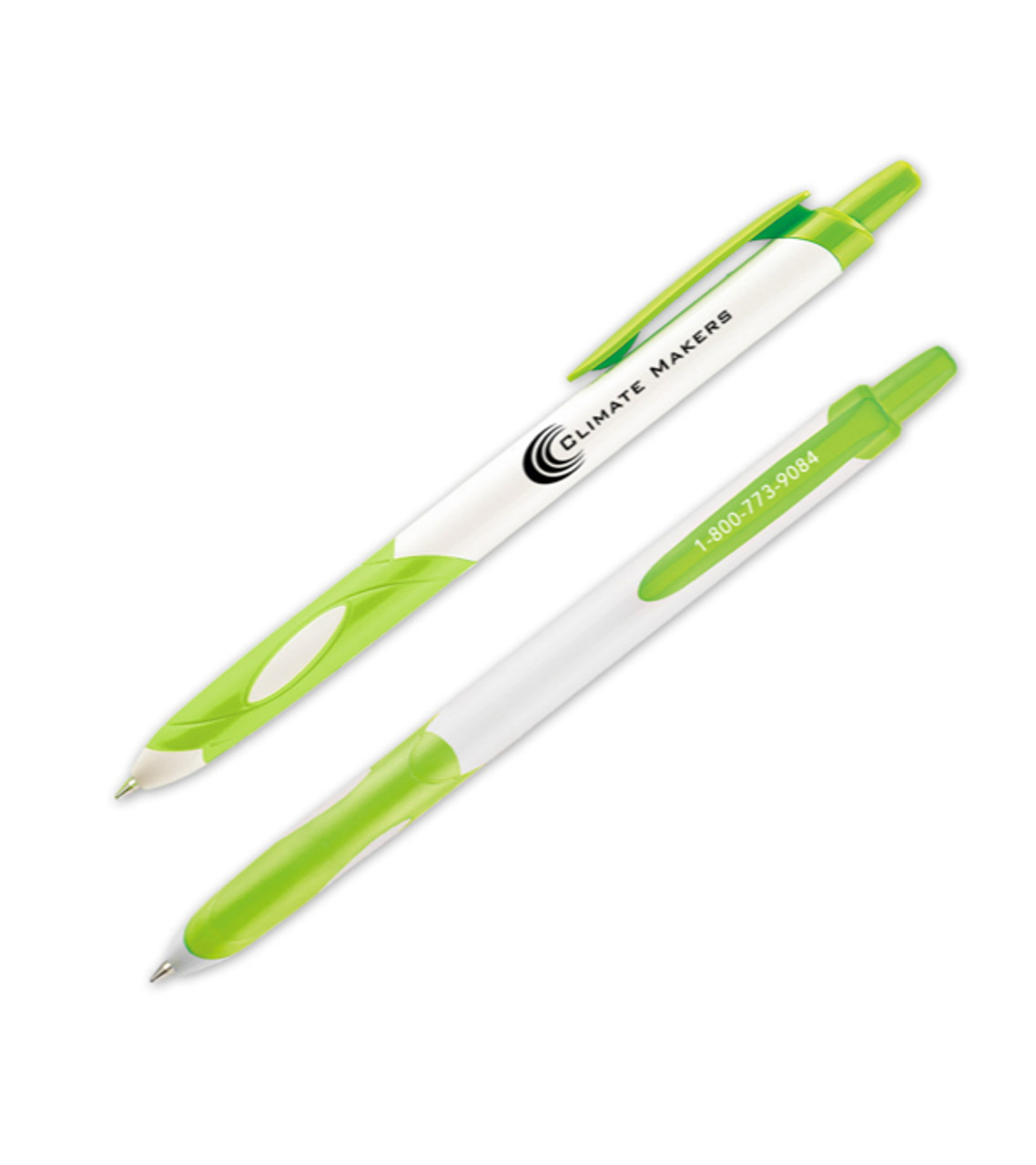 The Del Rio white pen, with its seamless, co-molded grip and color matching clip is an eye-catching promotional pen for any brand. The full size barrel offers maximum imprint area, and the white color is a perfect background for your message. Plastic Colorful, co-molded comfort grip with matching carrying clip Click-action retractable medium ballpoint Optional Clip imprint available. Features smooth and smear-free quality RiteFlow ink Screen-printed decoration Item size: 0.4″ W x 0.56″ D x 5.75″ L Imprint area: Barrel: 1.5″ W x 0.5″ H (1 color max.) / Clip: 1″ W x 0.125″ H (1 color max.) Imprint: Barrel: 3 lines / 26 characters per line Clip: 1 line / 14 characters per line Imprint charges: $24.95 set up charge $0.20 per pc per add’l location