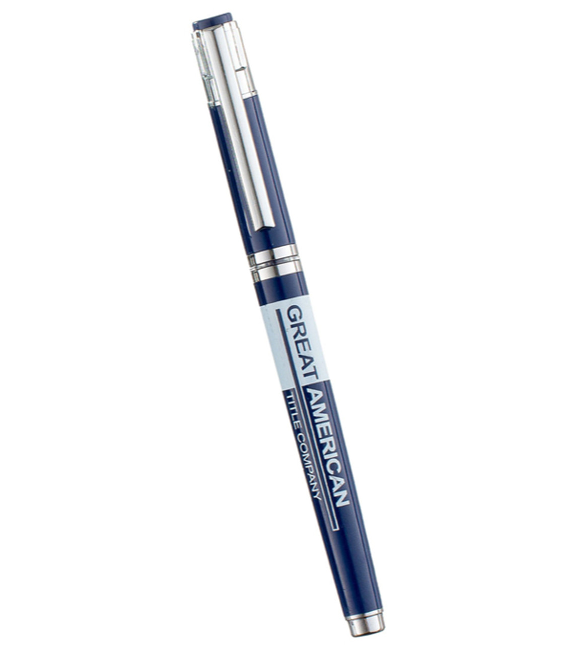 Fluid smooth and eye-catching, this gel pen with a lacquer finish and stylish chrome accents has a quality look and feel. Your company logo printed on the barrel is sure to make a good impression. It makes an excellent giveaway for financial institutions, realtors, and insurance agents. Durable plastic construction Lacquer finish for a rich look and feel Cap off to write Gel inkĀ  Chrome clip and appointments Screen-printed decoration Item size: 5.5″ H Imprint area: Wraparound: 2″ W x 0.75″ H (1 color max.) Imprint: Wraparound: 4 lines / 28 characters per line Imprint charges: $24.95 set up charge