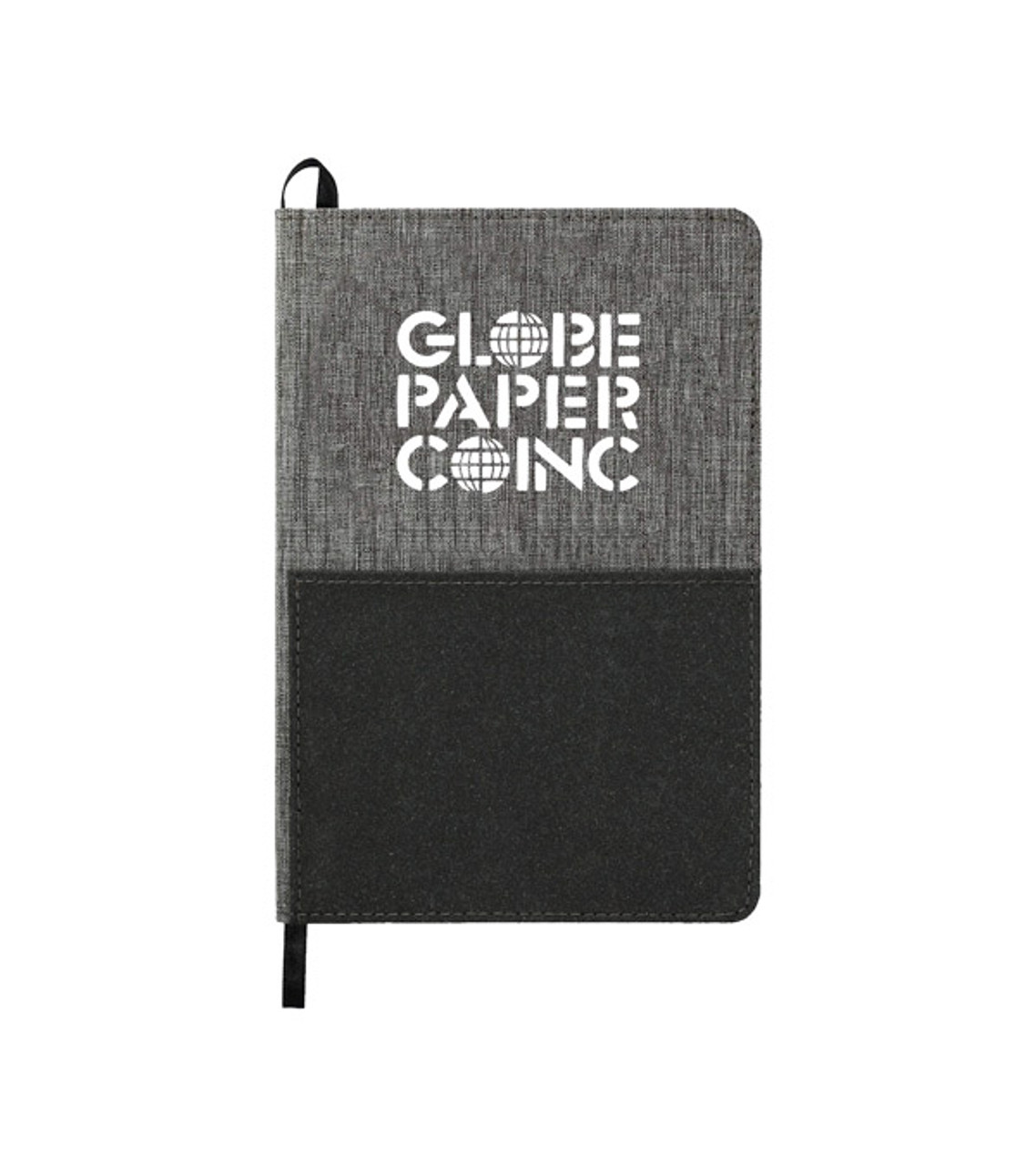 The Eco Elements Reclaim Recycled Bound Journal is a business gift designed to have a positive impact. It’s made of post-consumer recycled fabrics, with 80 recycled pages for convenient note-taking and a stylish front pocket to hold a smartphone, pen, ID card, or other small items. This custom notebook is a great way to help staff members stay organized day to day. Includes FSCĀ® Mix paper which means the paper is made from a mixture of materials from FSC-certified forests, recycled materials, and/or FSC-controlled wood. While controlled wood doesn’t come from FSC-certified forests, it mitigates the risk of the material originating from unacceptable sources./p> Bound notebook with RPET fabric (Post-Consumer Recycled Plastic) hard cover Recycled leather front pocket to store documents or a smartphone 80 sheets of FSCĀ® Mix recycled white paper Document pocket at the back Item made of 85% recycled materials Digital spot color decoration Item size: 5.7″ W x 8.11″ H x 0.5″ D Imprint area: Front: 4″ W x 3″ H (1 color max.) Imprint: Front: 10 lines / 24 characters per line Imprint charges: $60.00 set up charge