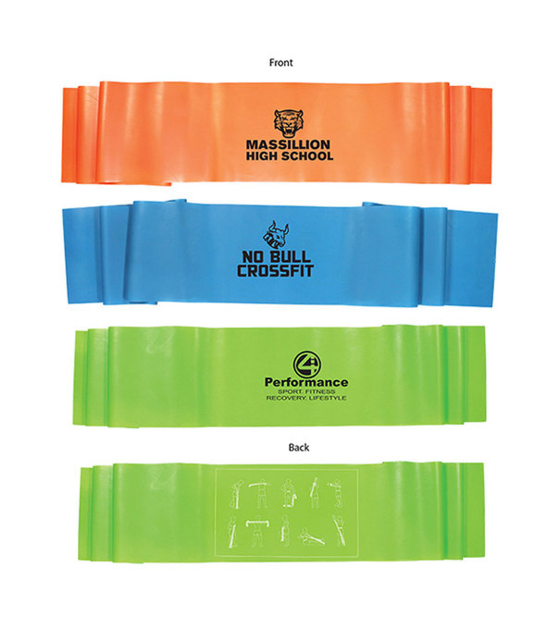 It’s no stretch to say that these exercise bands are a hit with fitness and healthcare clients. They come printed with sample exercises to get you started. 10 example exercises printed on band Latex material Light/Medium resistance Pad printed decoration Item size: 3.5″ H x 36″ L Imprint area: Front: 3.625″ W x 2.5″ H (1 color max.) Imprint: Front: 8 lines / 22 characters per line Applicable charges: $60.00 set up charge
