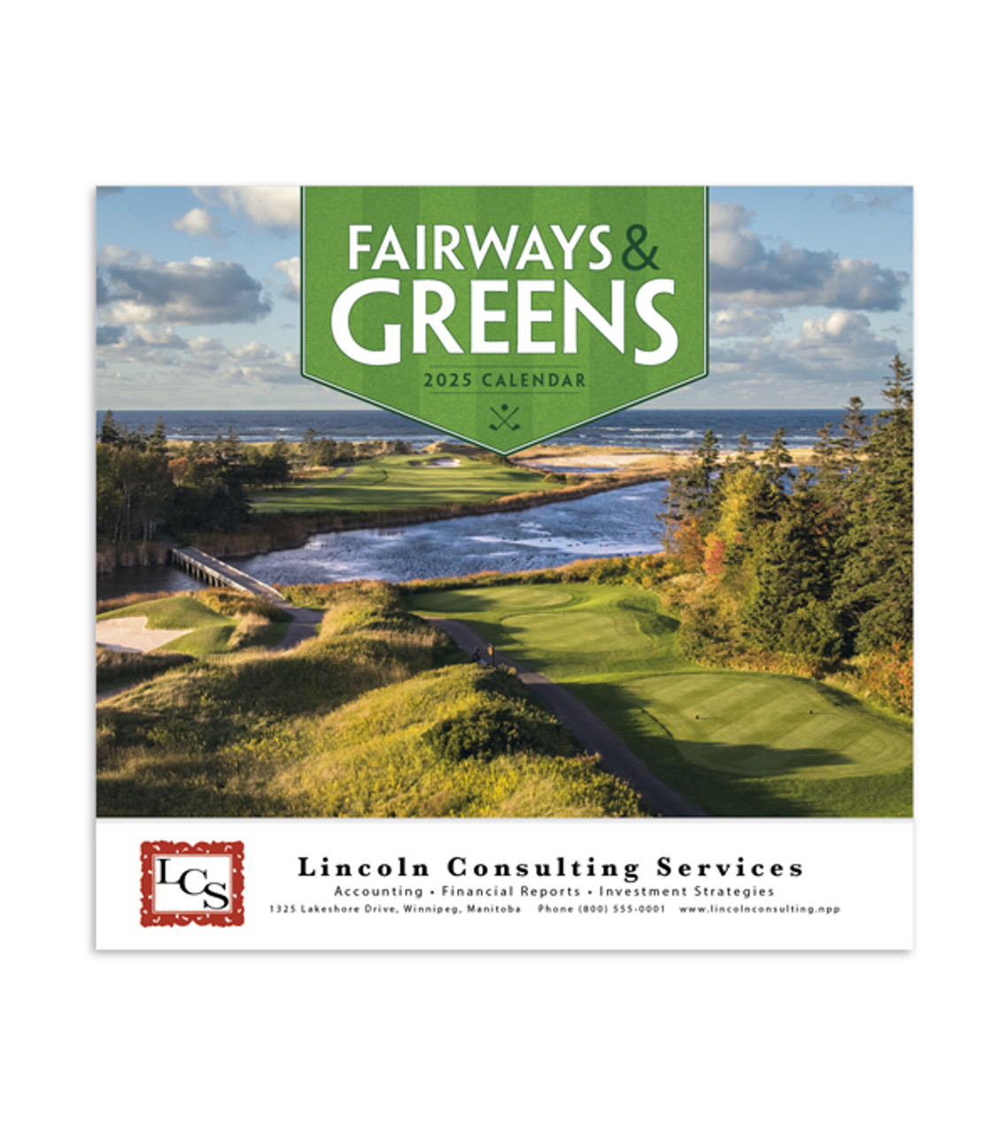 Ace any promotion with the Fairways and Greens wall calendar. Perfect for country clubs, golf shops, athletic brands and more, it features thirteen photographs of beautiful golf courses that would take anyone’s breath away. Give this quality calendar to customers or hand it out at conventions to get your brand more attention throughout the year. Gloss paper stock with UV coated cover 13 month calendar High-quality imagery Made inĀ USA Full-color digital decoration Item size: 11″ W x 10″ H Imprint area: Front: 9″ W x 1.25″ H (full color) Imprint: Front: 4 lines / 55 characters per line Imprint charges: $14.95 set up charge
