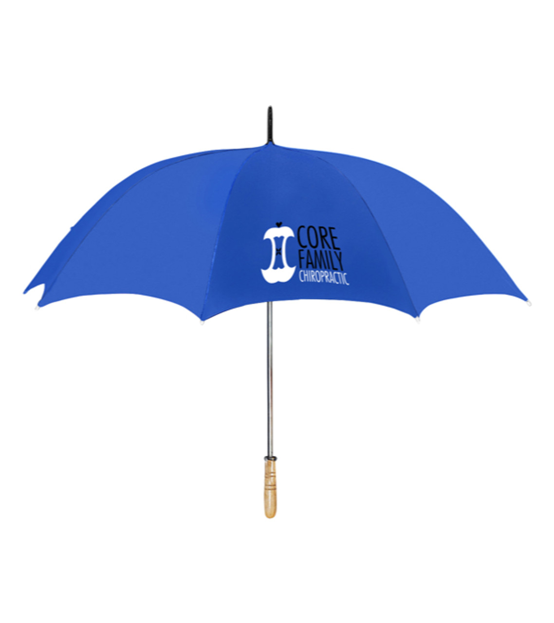 This 60-inch golf umbrella’s canopy is made from recycled materials is an eco-friendly gift that customers will appreciate. It’s made sturdy, with an aluminum frame and wood grip handles, and it opens wide with a large canopy to keep users dry in a rain storm all while showing off your custom imprint. Large golf umbrella 60-inch canopy Recycled polyester (rPET) canopy, made from post-consumer plastic bottles which are melted down to create new Polyester fiber Manual open Aluminum frame Wood grip handle Heat-transferred decoration Item size: Closed: 60″ Dia. x 40″L Imprint area: Panel 1: 10″ W x 6″ H (4 colors max.) Imprint: Panel 1: 5 lines / 40 characters per line Applicable charges: $60.00 set up charge per color $0.50 per pc per additional color