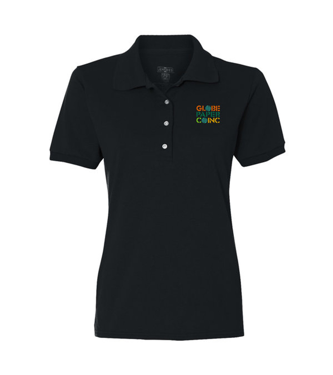 The Jerzees® Ladies’ Spotshield Jersey Polo is a smart uniform item for schools, restaurants, or other service industries. The Spotshield fabric is designed to repel water and most oil-based spills so it stays clean and presentable all day long. Add your logo and let this short sleeve polo add to the professionalism of your company. Stain-resistant ladies polo Spotshield fabric repels water and most oil-based spills Tagless label for comfort Side seamed and slightly contoured for a flattering fit Elongated four-button placket with bottom box stitch reinforcement Pearlized buttons with durable cross stitching Welt knit collar resists curling Clean-finished side vents Short sleeves Back neck tape for a clean, comfortable finish 5.6 oz. pre-shrunk 50/50 Cotton/Polyester jersey (Except Oxford is 43/57 Cotton/Polyester) Screen-printed decoration Item size: S-2XL: Imprint area: Left chest: 3.75″ W x 3.75″ H (3 colors max.) Left Sleeve: 2″ W x 4″ H (3 colors max.) Right Sleeve: 3.5″ Dia. (3 colors max.) Imprint: Left chest: 8 lines / 26 characters per line Left Sleeve: 8 lines / 14 characters per line Right Sleeve: 8 lines / 23 characters per line Applicable charges: $65.00 set up charge for first color and location $30 set up charge for additional color and location $0.79 per pc per additional color and location $25 color change charge Minimum Quantity of 48 pcs is required for imprint ink color change and additional set-up charge may apply. Extended sizes available; please call or email for extended size pricing and to order assortments.