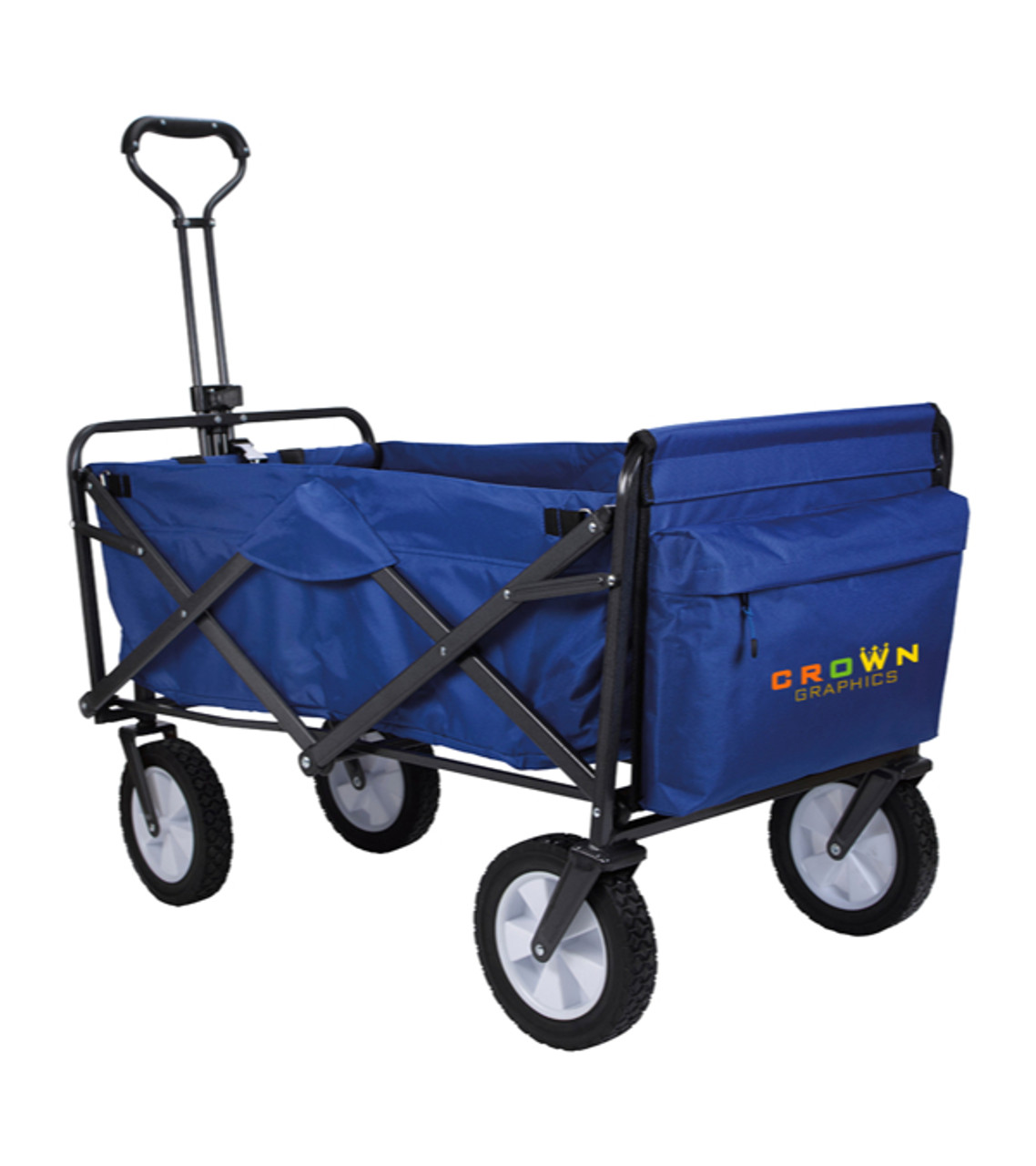 The Koozie® Collapsible Folding Wagon leaves a lasting impression on special customers, employees, and prospects, too. Recipients can use this business item to haul food and gear to picnics, sports events, camping trips, concerts and more. When the day is over, it easily folds up for convenient storage or transportation from one place to the next. Add your imprint and this is a wonderful way to make your business stand out. 210D Polyester wagon with steel frame Wagon conveniently collapses for storage and transportation Sets up in seconds (no assembly required) Features 2 neoprene cup holders that keep beverages cool Detachable front pocket for extra storage Holds up to 150 lbs (not intended to transport children) Wagon is about 8 in. when folded Screen-printed decoration Item size: Open: 20.5″ W x 29.5″ H x 36.375″ D Closed: 20.125″ W x 29.5″ H x 8.0625″ D Imprint area: Front:7″ W x 4″ H (4 colors max.) Imprint: Front: 10 lines / 32 characters per line Applicable charges: $60.00 set up charge per color $0.65 per pc per additional color