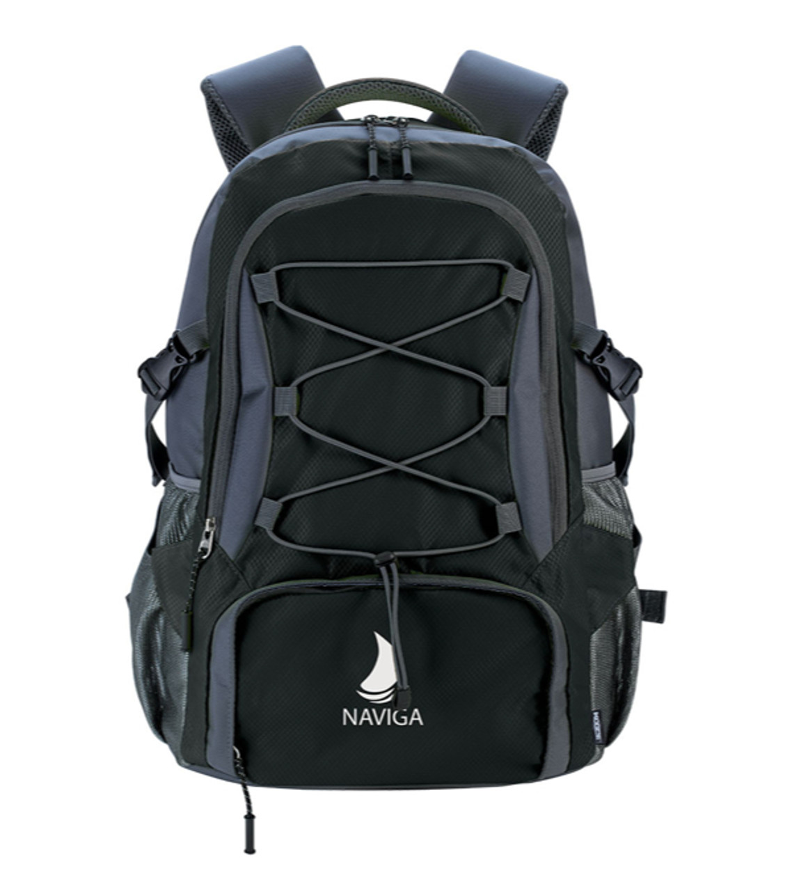 Equip your customers with the KOOZIE Wanderer Daypack and they’ll be ready for outdoor fun. This custom backpack has multiple compartments to fit all of their necessities. Bungee cords offer storage for larger items and equipment, while a padded backing and padded straps make comfort a top priority. They’ll carry this bag on trail hikes or the daily commute–there’s a laptop pocket, too–giving your brand logo the exposure you desire. Durable 420D ripstop polyester construction Large main zippered compartment with convenient laptop sleeve Two front zippered pockets and two side mesh pockets for added storage Bungee cords perfect for holding larger items and equipment Side compression straps Padded mesh back and padded adjustable shoulder straps for comfort Screen-printed decoration Item size: 13.375″ W x 20.125″ H x 7.125″ D Imprint area: Front: 4″ W x 3″ H (1 color max.) Imprint: Front: 10 lines / 26 characters per line Applicable charges: $60.00 set up charge