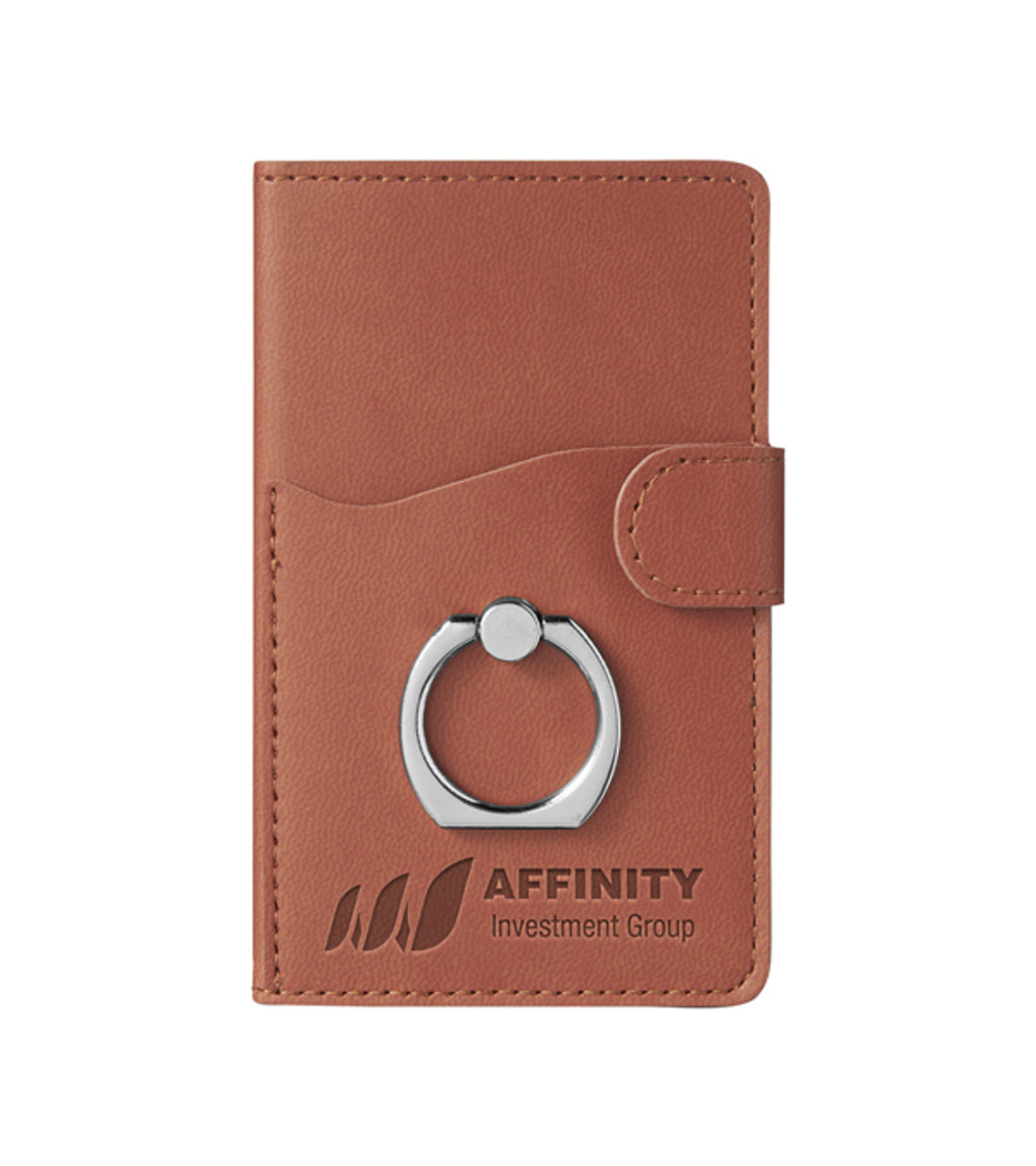A Stylish Essential for On-the-Go Professionals. Embrace the perfect blend of style and functionality with the Leeman Tuscany Dual Card Pocket with Metal Ring. Designed for the modern professional who values convenience and organization, this sleek accessory is a must-have for those constantly on the move. Premium faux leather exterior for a refined and stylish look Dual functionality to store and access business cards Rotating metal ring on back that transforms device into stand Includes removable 3M adhesive back for placement on phone Non-residue adhesive sticks to the back of your mobile phone Each pocket doubles as a wallet (holds approx 2 cards each) Hook and loop type closure for main compartment Compact size for convenient on-the-go use Slim profile for hassle-free portability Makes a sophisticated and practical gift for professionals Debossed decoration Item size: 2.55″ W x 4.13″ H x 0.2″ D Imprint area: Front: 2″ W x 0.5″ H Imprint: Front: 2 lines / 18 characters per line Applicable charges: $80.00 set up charge
