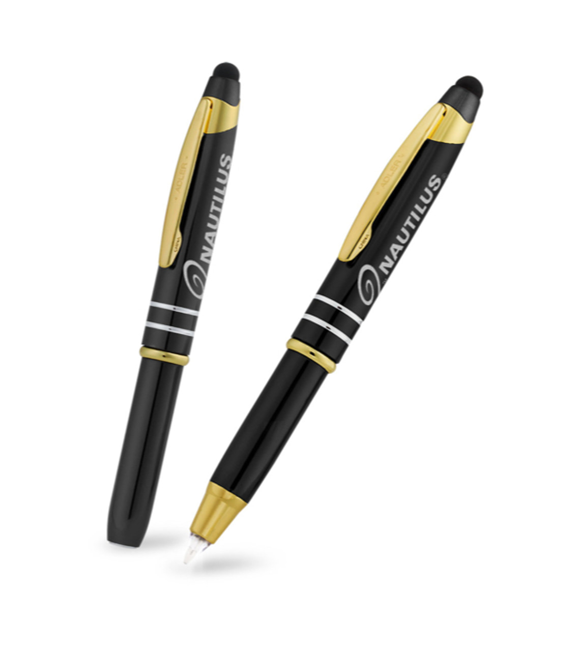 Our bestselling Lexi pen makes a powerful advertising statement! Gleaming gold and chrome accents provide modern style, while a cool, cap-activated LED tip shines a light where you write. It’s also a tech tool, with a stylus feature that works just like a finger on tablet and phone touchscreens. When nothing else than a “wow” will do, this outstanding promotional gift will get you noticed. LED flashlight, stylus, and pen. Durable metal construction Handsome gold and chrome details. Glossy enamel finish Cap off to write Medium ballpoint top Includes button cell batteries (replaceable) Individually cello wrapping available with extra charge Laser engraving guaranteed never to rub off. Now available with 24 HOUR RUSH processing! Item size: 5″ L Imprint area: 1.37″ W x 0.25″ H Imprint: 2 lines / 25 characters per line. Imprint Charges: $49.95 set up charge (includes rush processing charges) 24-Hour Rush: Price includes one color/one location only. Ships Next Day (Valid on select products only, pending art and credit approval). Art proof will be sent via email, so check your inbox immediately. An additional $25 fee will apply and will be included in the set up charge. Orders must be received by 12PM EST. Artwork must be approved by 3PM EST, Monday-Friday (holidays excluded). Rush charge applies to service and production time only; please allow additional time for your choice of delivery method. Maximum Quantity: 2,500 pieces. If you need more, please call for availability.