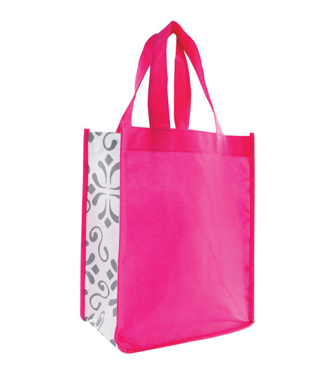 With a fun pattern, bright hues and your full-color imprint on the front pocket, the Mini Chi Chi Bag will get your brand name noticed anywhere. It’s an excellent giveaway at industry events or with purchases. Laminated polypropylene Front exterior pocket 12″ Carrying handles Full-color digital decoration Item size: 8″ W x 10″ H x 5″ D Imprint area: Front: 5″ W x 4″ H (full color) Imprint: Front: 4 lines / 18 characters per line Applicable charges: $60.00 set up charge