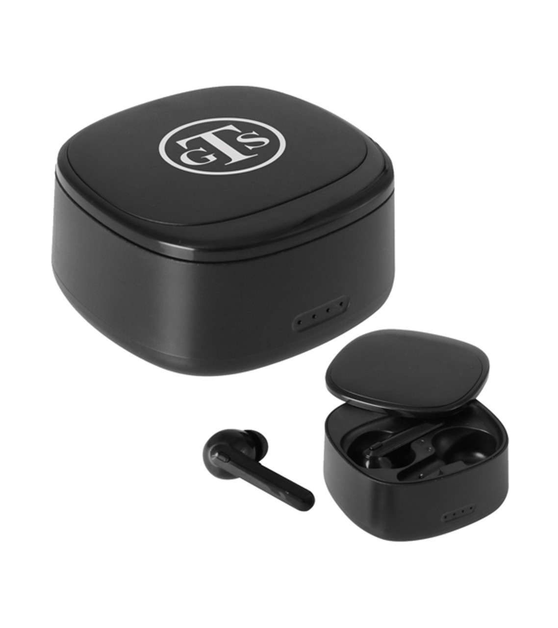 Leave an impression with the MOD POD True Wireless Earbuds with Charging Case. With Bluetooth technology they can be connected to most devices as far as 30 ft away for hands-free calls, music listening, and video streaming. Built-in controls allow users to change the song, adjust the volume, and answer or end calls simply by pressing the earbuds. This custom tech gift is a wonderful way to reward employee achievements, show appreciation for customers, or acknowledge partner contributions. High definition Bluetooth® 5.0 technology Built-in volume and music controls Case for convenient storage and charging of the earbuds Simply pair with a device to enjoy dynamic stereo sound or receive hands-free calls Features a Type-C input (cord Included) Output: 5 Volts/300mAh Screen-printed decoration Item size: 2.5″ W x 2.5″ H x 1.5″ D Imprint area: Front cover: 1.25″ W x 1.25″ H (1 color max.) Imprint: Front cover: 4 lines / 12 characters per line Applicable charges: $60.00 set up charge
