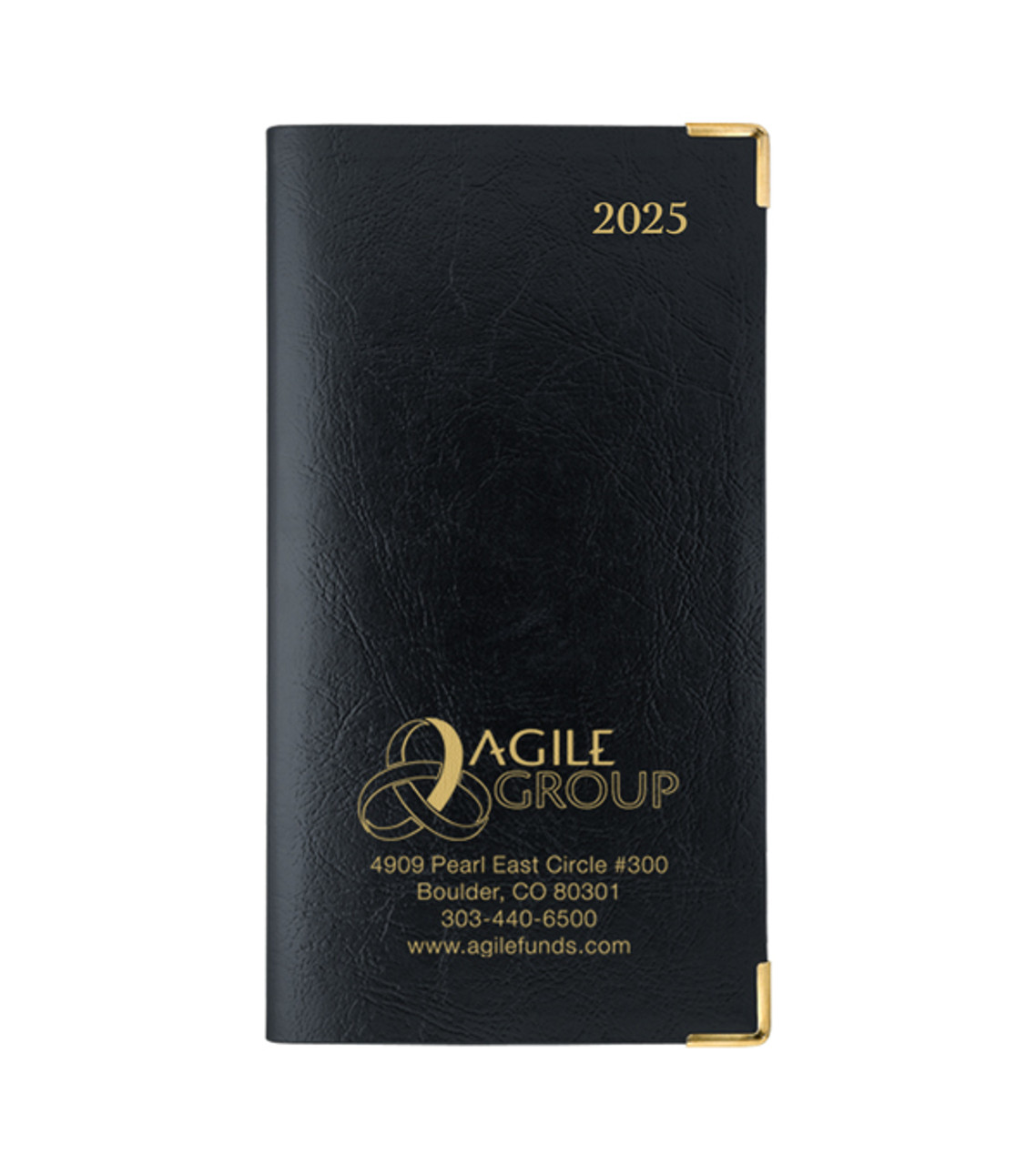 For customers who deserve a special touch, choose our Montana Genuine Bonded Leather promotional weekly pocket calendar. With your logo or custom imprint hot-stamped in gold foil on the cover, they are promotional calendars that will be well received by your most discriminating clients. 144 pages. Exclusive Calendar Features: 144 Pages Week-in-view calendar Weekly Quotes US/CA Holidays & Observances US/CA Time Zone Map International Dialing Codes International Times Address/Phone Numbers Keyboard Shortcuts Gift Ideas US State Facts Metric Conversion Chart CPR & First Aid Instructions Next Year Advance Planning Birthdays & Anniversaries Toll Free Numbers and Websites Colorful World Map Item size: 3.25″ Wx 6.125″ H x 0.03″ D Imprint area: 2″ W x 4″ H Imprint: 4 lines / 27 characters perline Imprint charges: $24.95 set-up charge per location $0.15 per pc per additional location