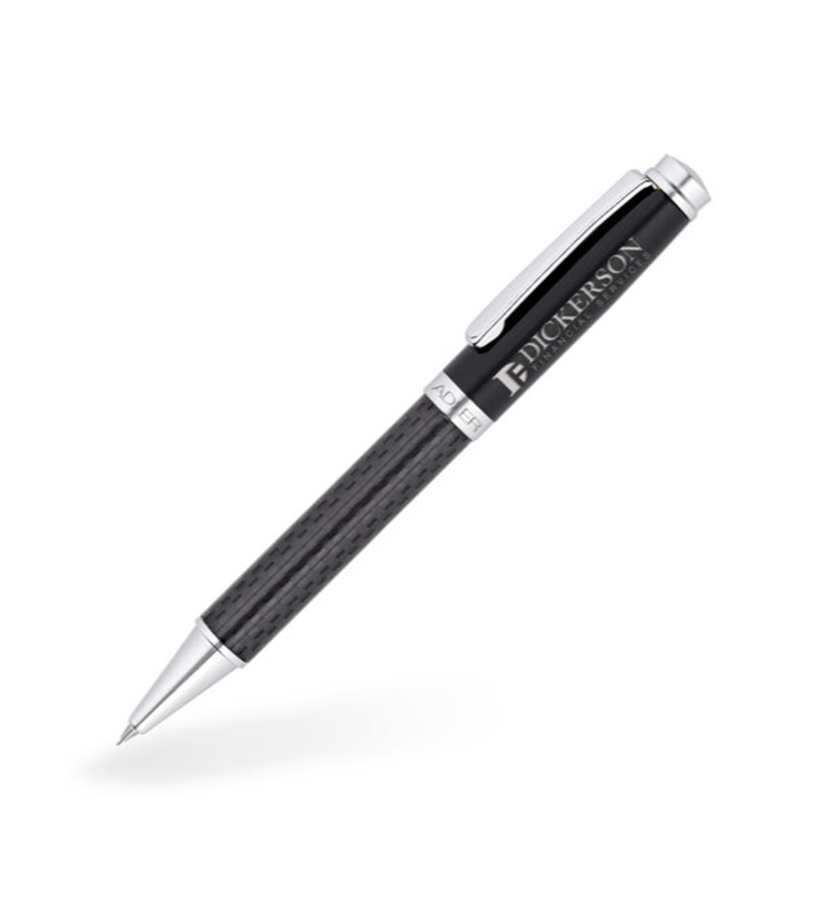 The Monza Ballpoint pen is a contemporary classic. Designed exclusively for the Adler Collection, its solid brass construction features the stunning look of carbon fiber with highly polished chrome accents. Presented in a custom gift box, it’s an impressive gift for your top clients and employees. Durable solid brass construction Twist-action retractable medium ballpoint Bright chrome clip and accents Carbon fiber finish Gift box included Laser engraved so your imprint won’t rub off or fade Uses Jumbo Ballpoint Pen refill Imprint option: 3 initials, 2 line imprint 27 characters or logo laser engraved on cap Item size: 5.375″ L Imprint area:  1.5″ W x 0.25″ H To decorate your gift box or for other decoration requests, please call our Customer Service representatives at (877) 803-3358. Additional charges may apply. Choose from our other Monza Executive products: Rollerball Pen or Monza Carbon Fiber Executive Pen Gift Set