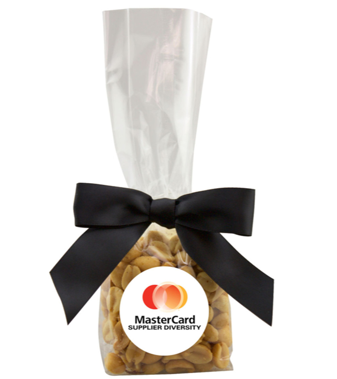 If you’re looking for a gift that gets people talking about your brand, this bag of peanuts is sure to do the trick. It’s sized to slip into a mug, but with its ribbon, it’s fancy enough to stand alone. We’ll add your logo to the laminated decal to create an outstanding favor for company and community events. Plastic bag Filled with 4 oz. Peanuts Made in USA Full color digital label decoration Item size: 2″ W x 6″ H x 1.5″ D Imprint area: Bag: 1.7″ Dia. (full color) Imprint: Bag: 6 lines / 12 characters per line Applicable charges: $60.00 set up charge