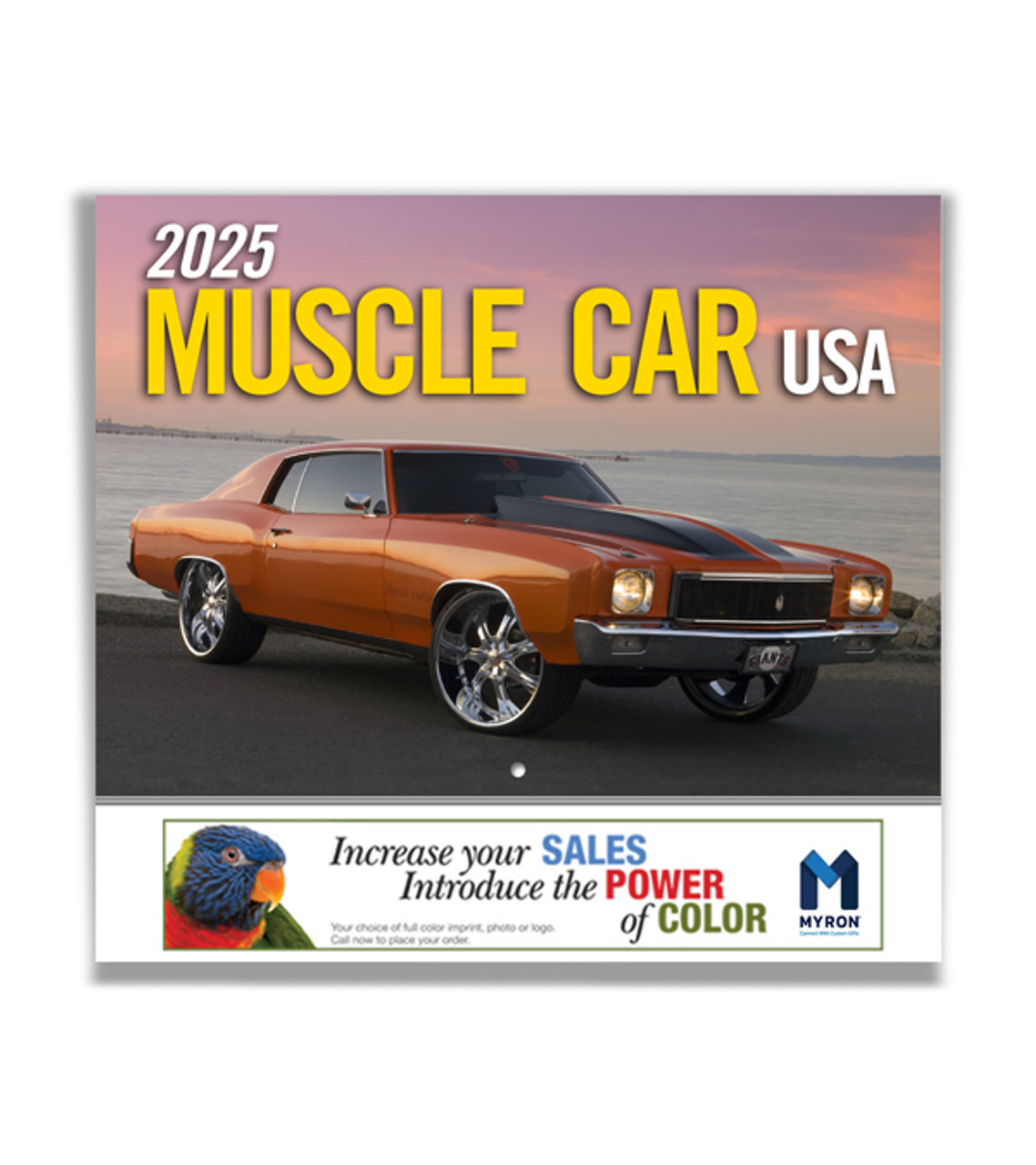 Time to rev up your year-end promotions. For all that love those tough looking cars then this is the custom wall calendar for you. Twelve amazing photographs and a QR Code that lets you scan for even more information about these treasured models. Put your name and logo on it and get the most out of your investment. High-quality gloss paper Large imprint area Affordable year-long advertising Full color digital decoration Item size: 10.875″ W x 18″ H open / 10.875″ W x 10″ H closed Imprint area: Front: 9″ W x 1.25″ H Imprint: 4 lines / 55 characters per line Imprint charges: $14.95 set-up charge