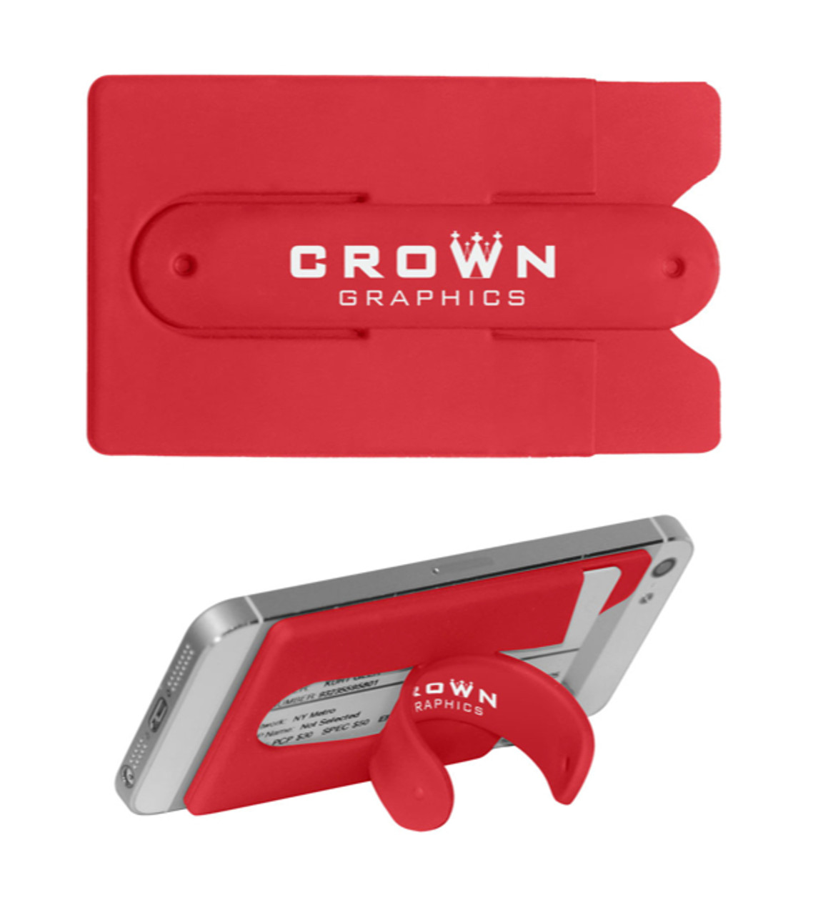 When your business plan calls for growth, the My Silicone Wallet with Stand is the answer. This convenient little wallet sticks to the back of any cell phone with durable 3M adhesive. The built-in stand easily snaps into position to prop up the device. Hand out this item at trade shows, conferences and more; it will certainly go a long way for brand recognition! We see our phones every day – valuable real estate logo space! Convenient wallet to store cards, keys, and cash all in one place Made of flexible silicone with 3M adhesive backing Sticks securely to back of any tech device Push down on center strip to easily snap stand into position Can be used vertically or horizontally Item size: 3.75″ W x 2.25″ H Imprint area: Centered horizontally on phone stand: 2″ W x 0.5″ H (1 color max.) Imprint: Centered horizontally on phone stand: 3 lines / 27 characters per line Applicable charges: $30.95 set up charge