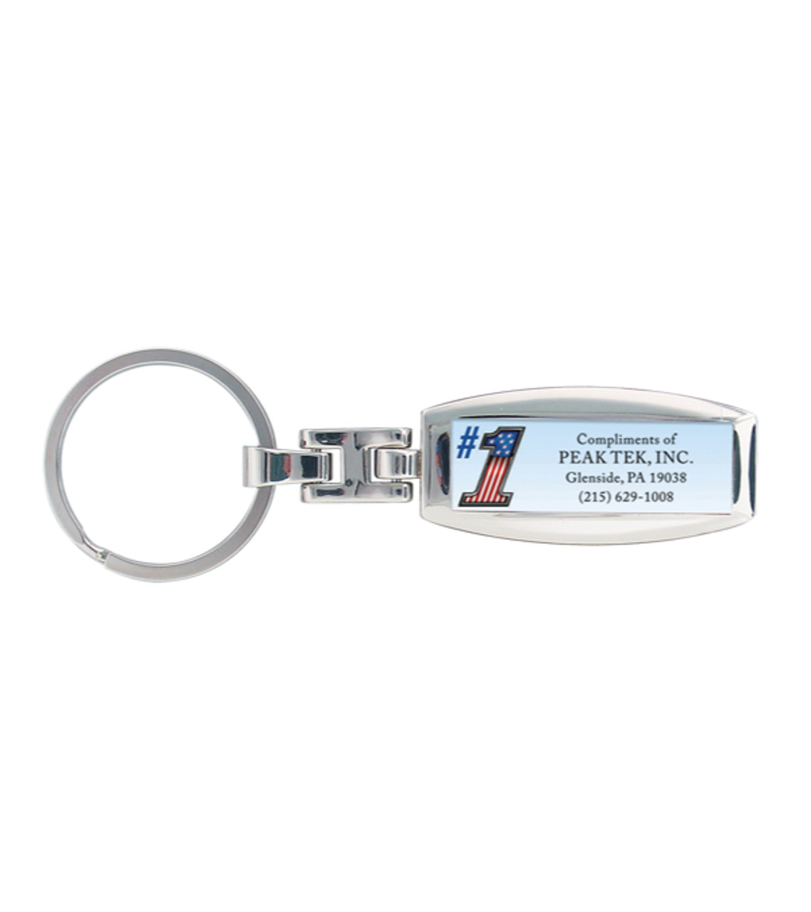 Give this highly useful gift to remind customers why you’re number one. This keychain makes a great handout at picnics, festivals, trade shows, and promotional events. Chrome-plated stainless steel construction Full-color digital epoxy domed decoration Item size: 4.25″ H Imprint area: Front: 1.1″ W x 0.43″ H (full color) Imprint: Front: 3 lines / 21 characters per line Applicable charges: $26.00 set up charge