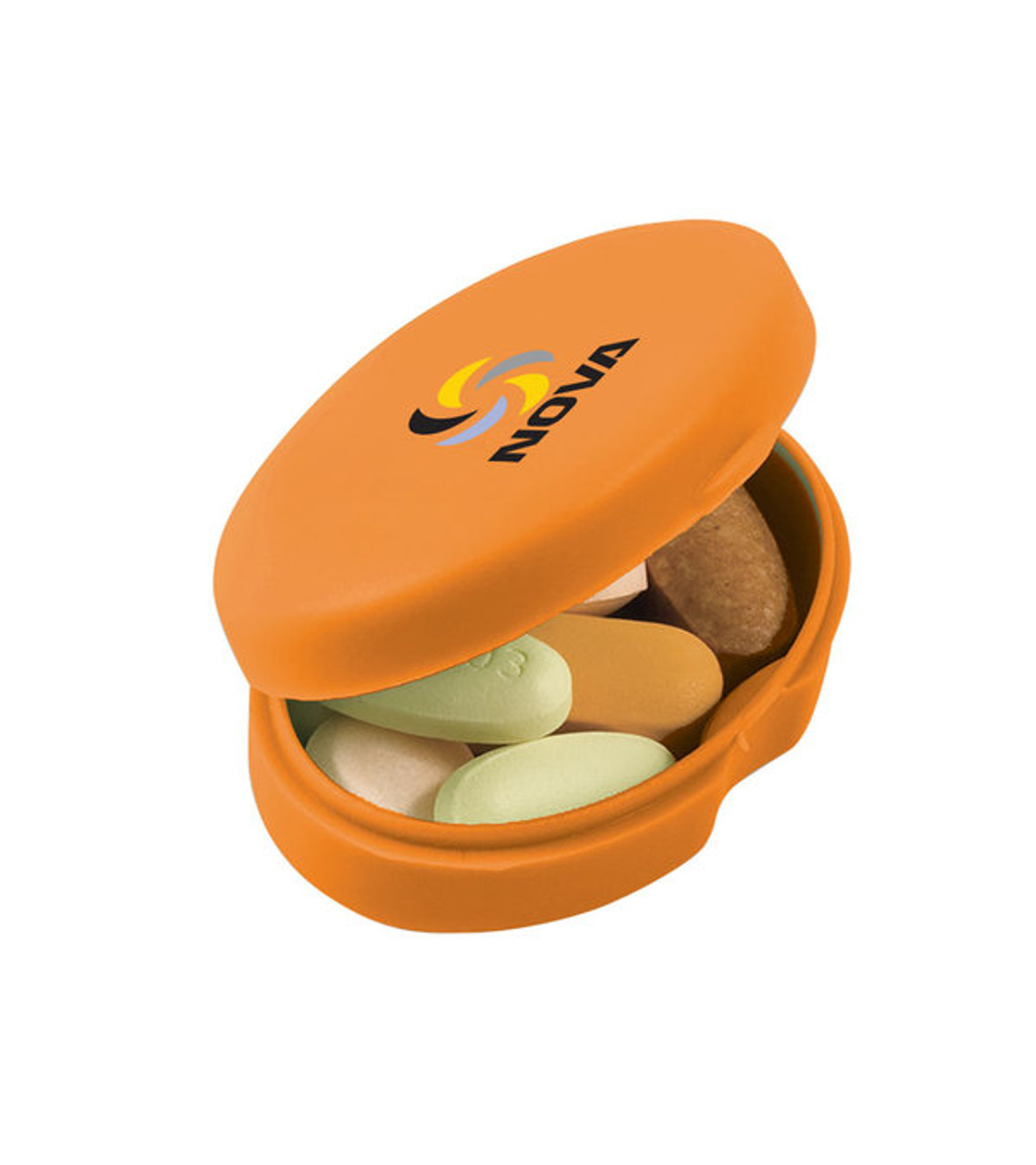 Help your customers stick to their wellness regimens with this sturdy oval pill box. Sleek and compact, it easily fits into purses and backpacks, keeping vital medications on hand at all times. Health-fair attendees will be wowed by your company’s thoughtfulness. K-Resin Lightweight, compact design Can hold both large and small pills Made in USA Pad-printed decoration Item size: 1.875″ W x 1.3125″ H x 0.875″ D Imprint area: Top: 1.25″ W x 0.875″ H (4 colors max.)Imprint: Top: 5 lines / 14 characters per line Applicable charges: $60.00 set up charge per color $0.50 per pc per additional color