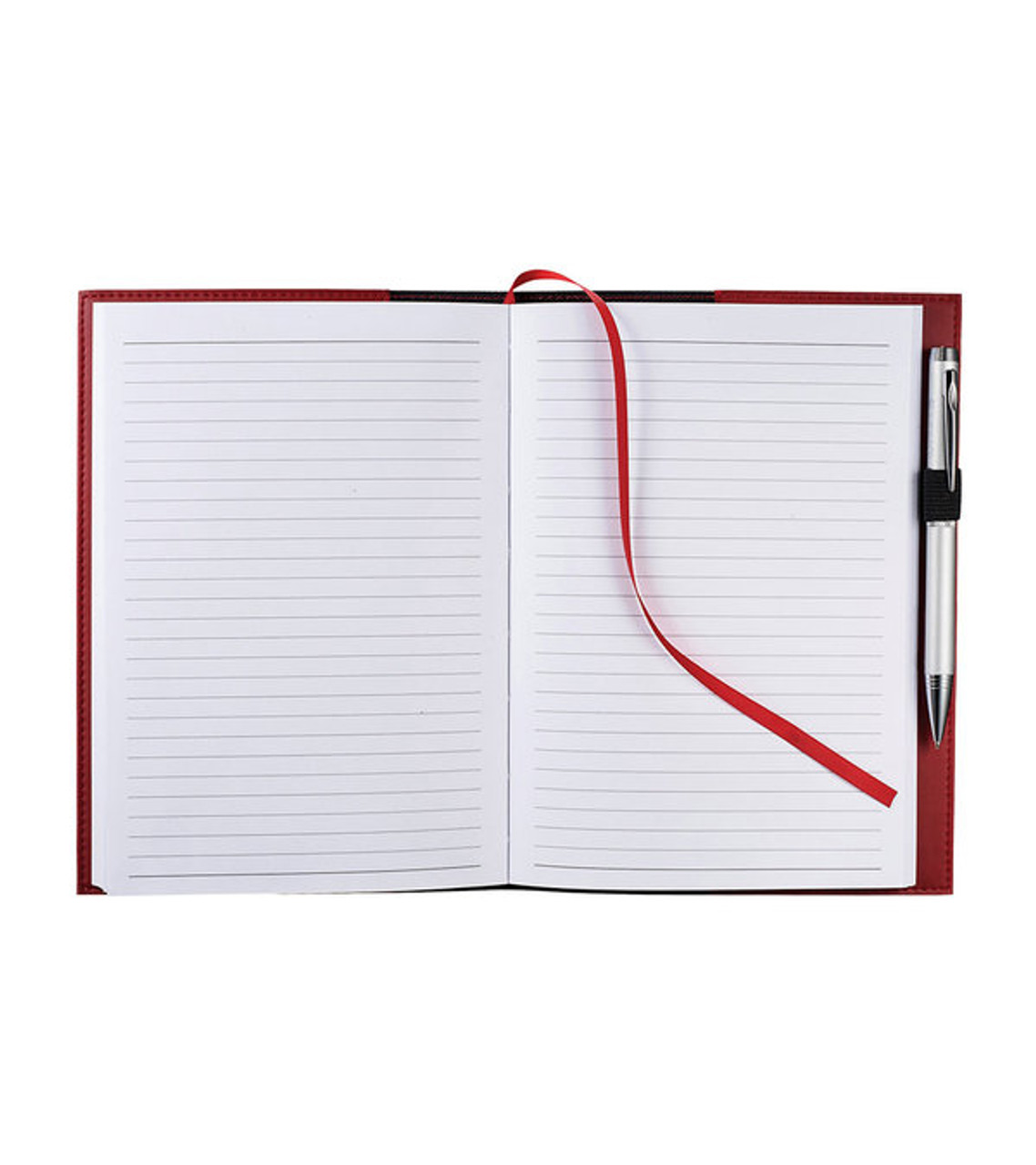 The clean lines of this notebook put all the focus on your imprint. Its pages can be refilled, making it the gift that keeps on going. Includes FSC® Mix paper which means the paper is made from a mixture of materials from FSC-certified forests, recycled materials, and/or FSC-controlled wood. While controlled wood doesn’t come from FSC-certified forests, it mitigates the risk of the material originating from unacceptable sources. Refillable journal with built-in elastic pen loop (pen sold separately) and ribbon page marker Italian UltraHyde cover Includes 80 sheets (160 pages) of white lined FSC® Mix paper Paper refills available on leedsworldrefill: 9091-98RF Debossed decoration Item size: 6″ W x 8.5″ H x 0.47″ D Imprint area: Front: 2.5″ W x 5″ H (1 color max.) Imprint: Front: 10 lines / 16 characters per line Imprint charges: $90.00 set up charge