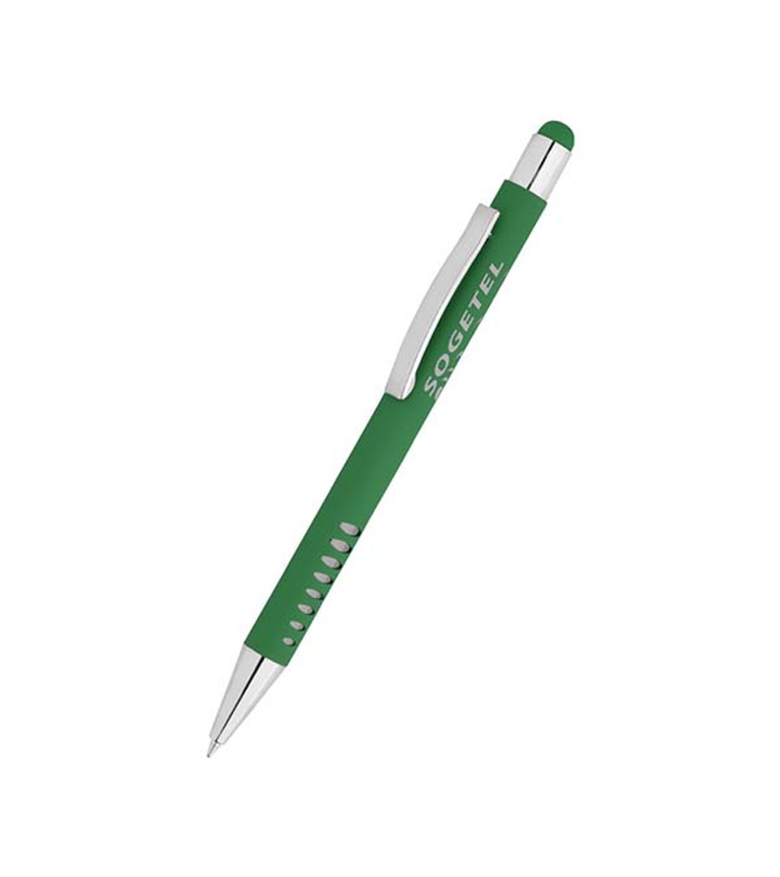 The Ridgmont Stylus Soft Touch pen is designed to get all eyes on your imprint. It has a smooth, soft-touch finish that feels great in-hand, a stylus for touchscreen navigation, and stylish cutouts at the grip for a secure hold and increased appeal. We’ll laser engrave your imprint and this is a pen that makes a lasting impression. Click-action ballpoint pen Stylus for indirect contact with touchscreens Soft-touch barrel finish Chrome accents Convenient carrying clip Metal Laser-engraved decoration Item size: 0.39″ W x 5.55″ H Imprint area: Barrel Front: 2.7″ W x 0.25″ H Barrel Back: 2.7″ W x 0.25″ H Imprint: Barrel Front, Barrel Back: 2 lines / 44 characters per line Imprint charges: $24.95 set up charge