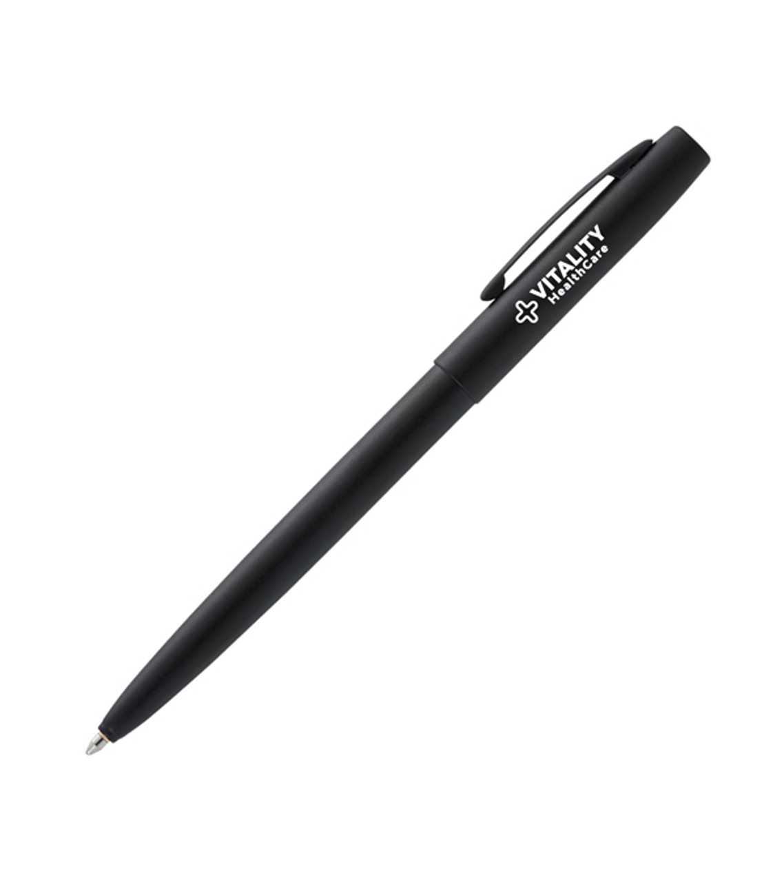The Rite in the Rain All Weather Metal Pen is a durable and versatile writing tool that can withstand extreme conditions. It features a powder-coated brass barrel, a pressurized ink cartridge, and writes smoothly through various substances. Durable powder-coated Brass barrel and pocket clip Pressurized ink cartridge works in temperatures ranging from -30F to 250F, underwater, and at any angle. Writes through water, sweat, grease, and mud without smearing. Includes a 0.9mm tip and provides black ink. Made in the U.S.A Pad Print decoration Item size: 5.12″ H x 0.37″ Dia Imprint area: Front / Back: 1.25″ W x 0.2″ H (1 color max.) Imprint: Front / Back: 2 lines / 16 characters per line Imprint charges: $60.00 set up charge