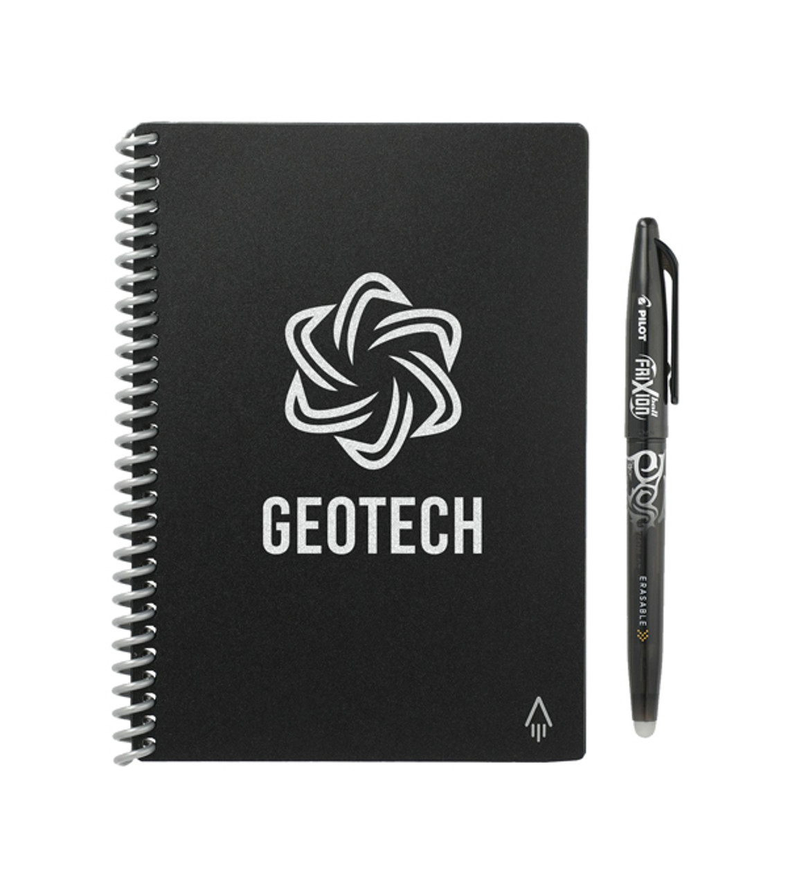 The Rocketbook Core Director Notebook Bundle is a modern gift ideal for the classroom, conventions, brainstorm meetings and more. Users can take notes with the erasable pen, save their notes to the cloud for free using the accompanying app, and then wipe the pages clean to use again. This is a long-lasting gift that will get your business on their minds more often. Recycled polypropylene notebook with spiral binding 36 reusable pages Synthetic reusable paper wipes clean with ease Only for use with Pilot Frixion Erasable pen (included) Spiral binding Microfiber cloth included Set comes in a premium gift box Screen-printed decoration Item size: 7″ W x 5″ H x 0.25″ D Imprint area: Front: 4″ W x 3″ H (1 color max.) Imprint: Front: 10 lines / 55 characters per line Imprint charges: $60.00 set up charge